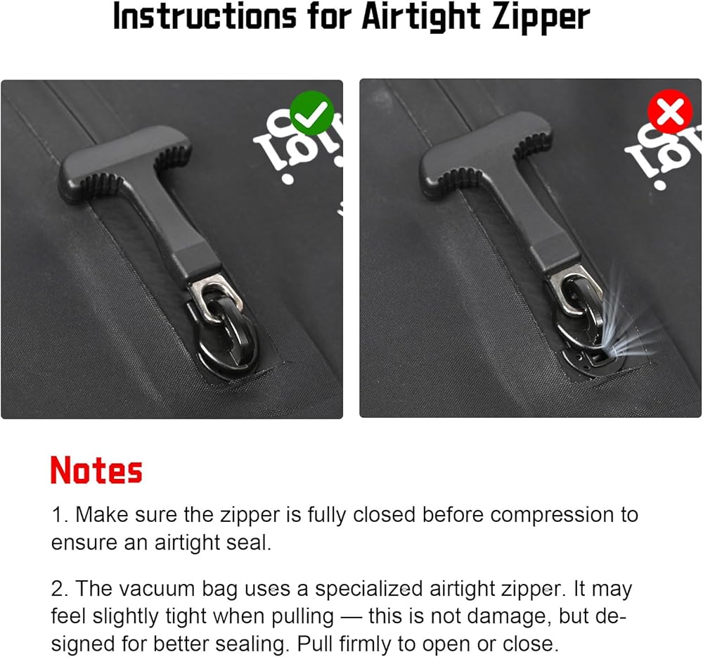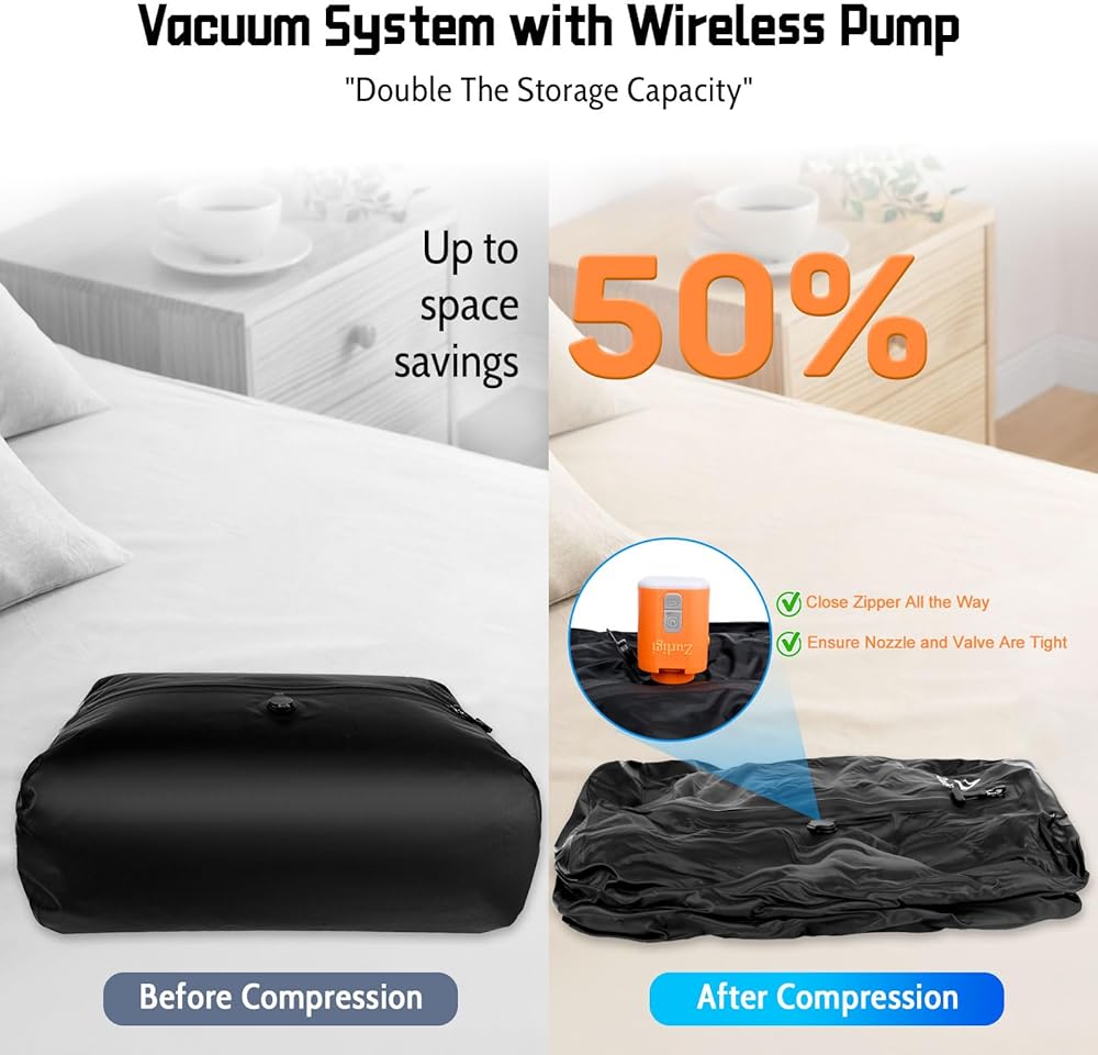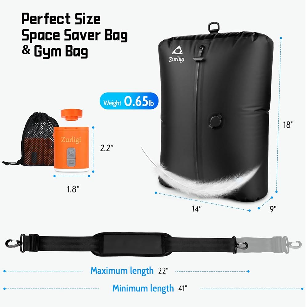 الاستخدام الفعال للمساحة: تتميز حقيبة سفر ضغط Zurligi بالضغط على وظيفة ضغط فراغ فعالة تقلل بشكل كبير من حجم الملابس ، مما يساعدك على توفير ما يصل إلى 50 ٪ من المساحة في أمتعتك. هذا مفيد بشكل خاص لرحلات أطول أو عند السفر بمساحة حقيبة محدودة. مزود بمضخة فراغ قوية ، يضغط بسرعة وكفاءة كيس السفر الفراغي. يمكن أيضًا ضغطه بسهولة عن طريق التراجع اليدوي أو المتداول