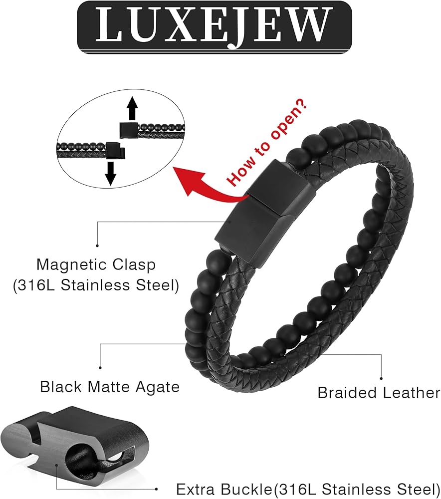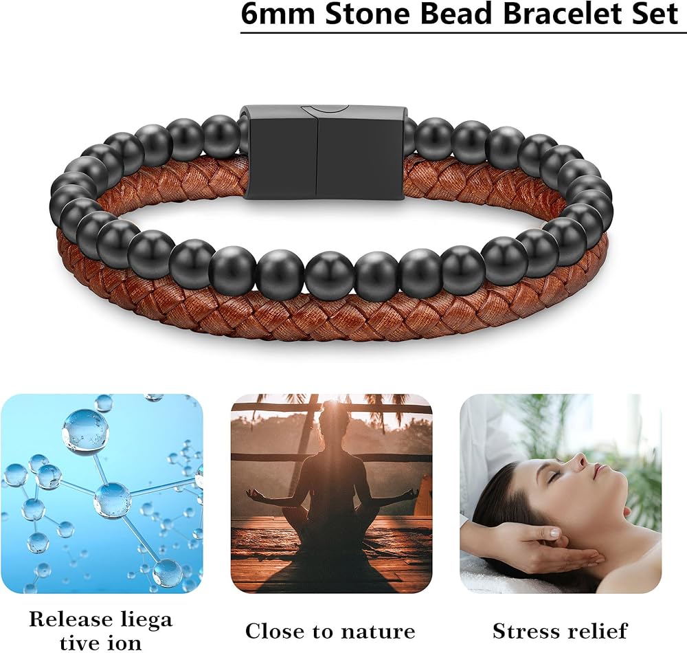 • 🎁 material من السوار: مصنوعة من حبات صخرية من الحمم البركانية 6 مم + 6 مم من الجلد المضفر + قفل مغناطيسي من الفولاذ المقاوم للصدأ الذي لن يتلاشى. لا يحتوي سوار الحماية على أي مادة خام مع النيكل أو الرصاص ، وآمنًا للأشخاص الذين يعانون من النيكل والحساسية.