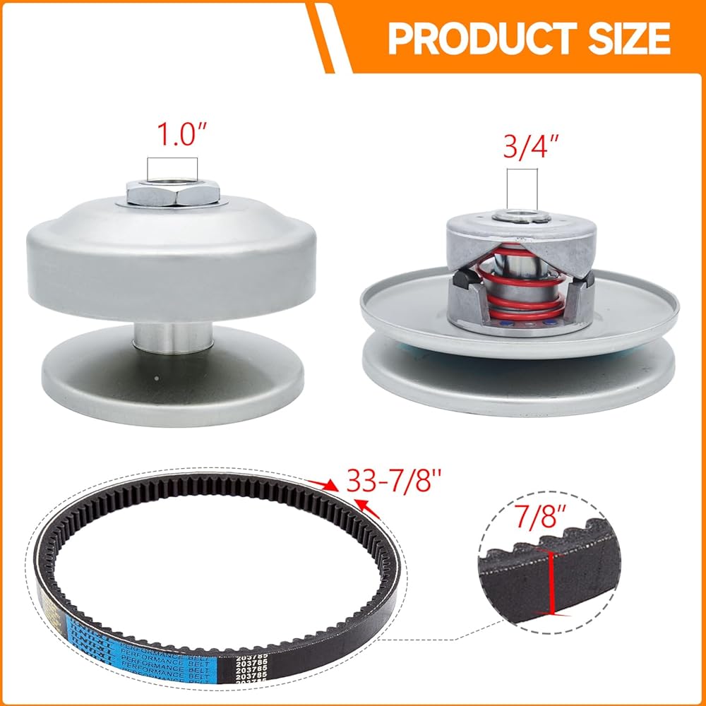 【مواصفات القابض】 قابض محرك الأقراص: 1 "تجويف رمح ، قابض مدفوع: 3/4" يتحمل. هذه مجموعة محول عزم الدوران تناسب محركات 8 - 16 حصان ، نطاق المشاركة: 1600 - 3300 دورة في الدقيقة. إنه يعمل مع موديلات Comet 40/44 Torq-A-Verter ، كما يناسب Manco Go Karts. 【مواصفات الحزام】 استبدال Comet OEM #203785A 203785 ، Manco #12346 ؛ الحجم: 7/8 "W x 33 7/8" OD.