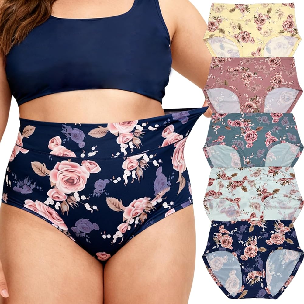 5 حزمة الزهور النسائية زائد الحجم XL-5XL سراويل داخلية مصممة للنساء زائد الحجم لديهم تغطية كاملة تناسب منحنياتك تماما ومناسبة للارتداء اليومي