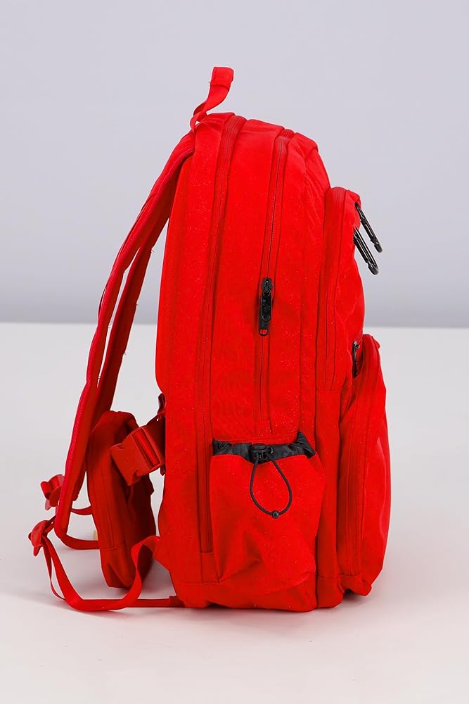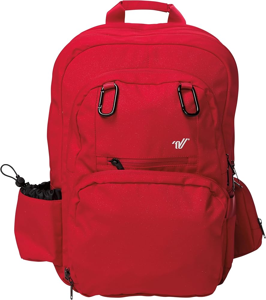 Versatile carrying options include adjustable shoulder straps, a top handle, and a removable crossbody strap, while detachable carabiners let you clip on additional accessories or team spirit items.