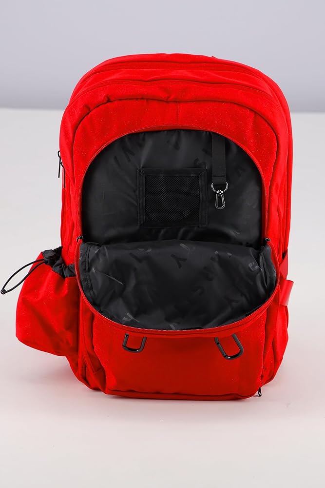 The spacious interior includes a dedicated 17-inch laptop sleeve and an expandable water bottle pocket that accommodates up to 40oz tumblers, making this gym bag perfect for long competition days.