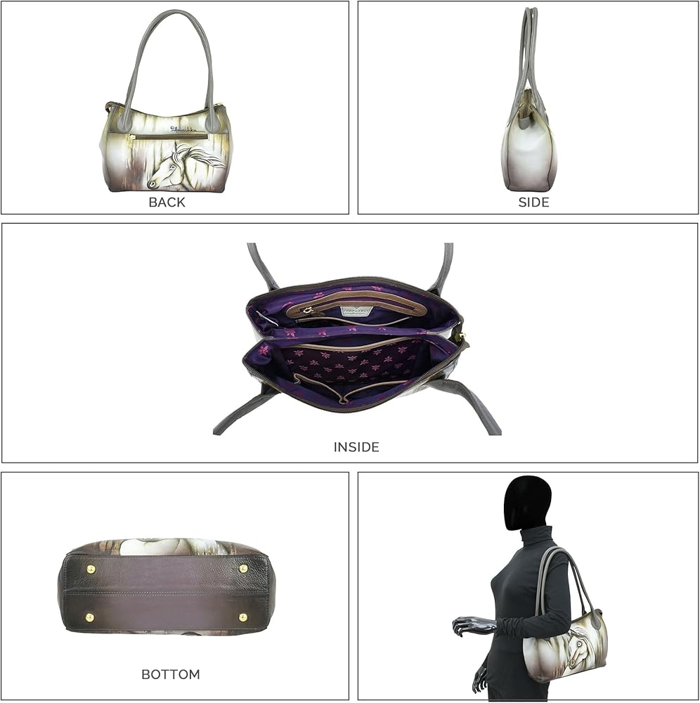 • FUNCTIONAL DESIGN - Designed for both beauty and form, each bag features a top zippered entry, 2 compartments, 2 multipurpose pockets, a zippered wall pocket, an open wall pocket, a key fob, a rear pocket, and a shoulder handle with a 10" drop