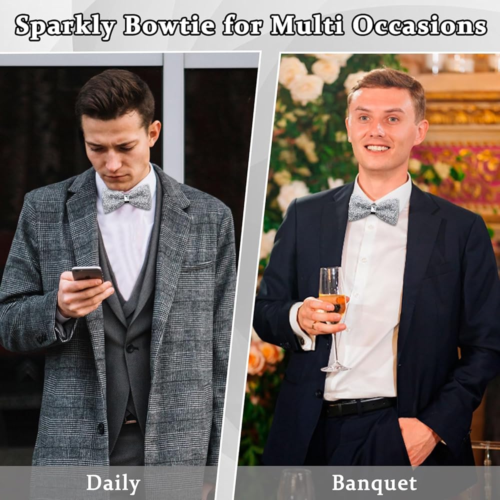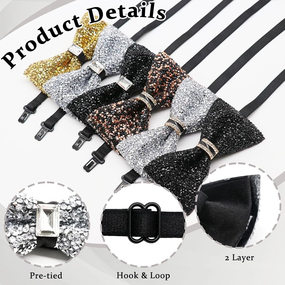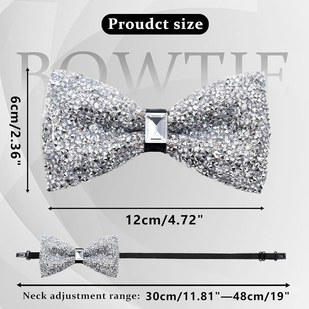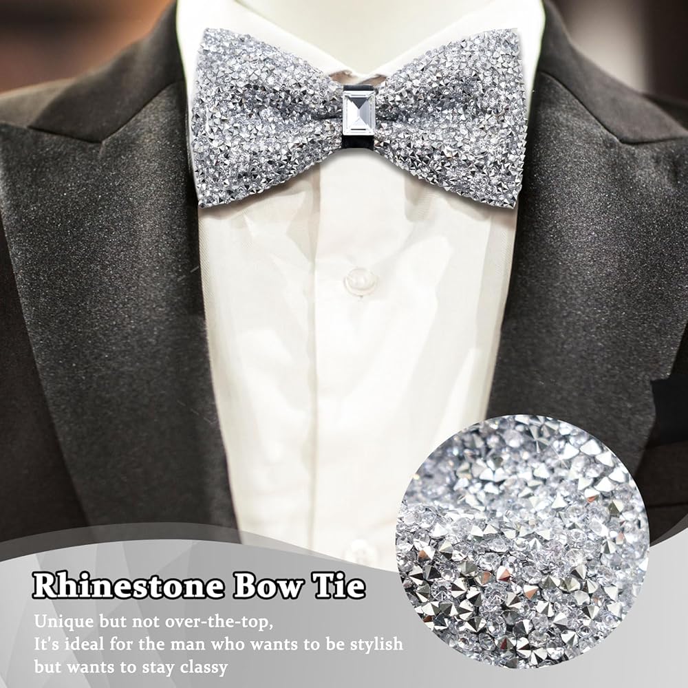 • راينستون القوس للرجال: تم تزيين ربطة عنق القوس من الرجال بأحجار الراين المصنوعة يدويًا المذهلة التي تلتقط الضوء بشكل جميل ، مما يضمن أن تبرز في أي مناسبة