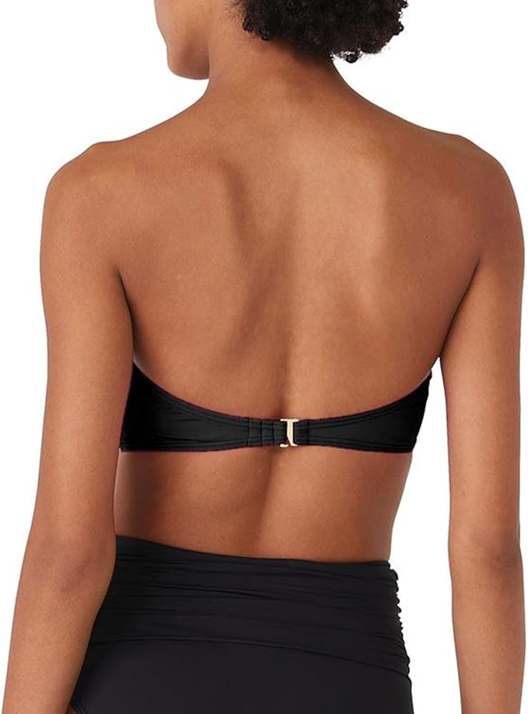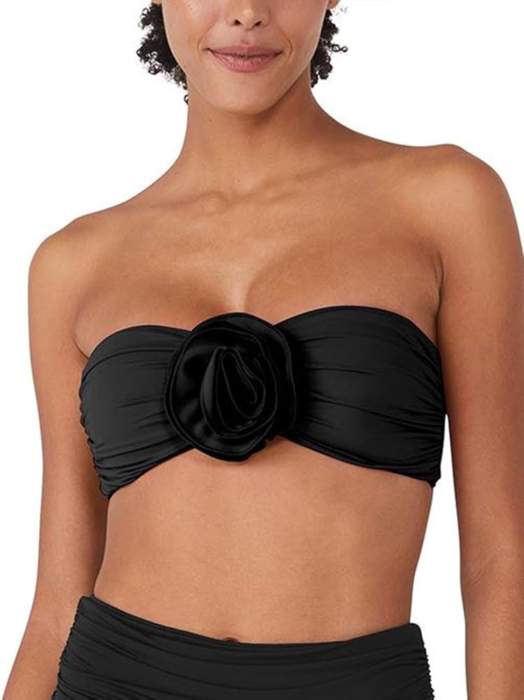 Floral Rosette Trim Bandeau Bikini Bra With Removable Soft Cups and Detachable Strap
