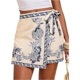 • Feature: Graphic Print, Contrast Binding, Tie Knot Side, High Rise, Wrap, Mini Skirts for Women