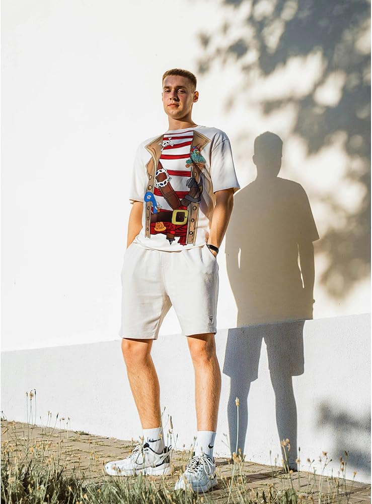 【عالي الجودة الطباعة الرقمية】 تقنية الطباعة الرقمية المتقدمة تجلب تصميمات القراصنة على هذه القمصان إلى الحياة. التفاصيل حادة ، والألوان حية. المطبوعات تعرض رموز ثقافة القراصنة والخرائط. تتلاشى للغاية - مقاومة ، تبقى الرسومات جريئة وعين - تلتقط بعد العديد من الغسل. مثالي للاستخدام المتكرر في القراصنة - أحداث ذات طابع مثل Pirate Nights أو Cosplay. سواء لحفلات ممتعة أو أزياء - اللعب ، تحافظ هذه القمصان على مظهرها المذهل.