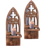 شمعدان شمعة جدار خشبي مصنوع يدويًا - مجموعة من 2 مع حاملي شمعة مرآة 16 بوصة ، شمعدان شمعة خشبية ، شمعة جدار خشبي ريفي لعيد الميلاد والاستخدام اليومي المحترق الطبيعي