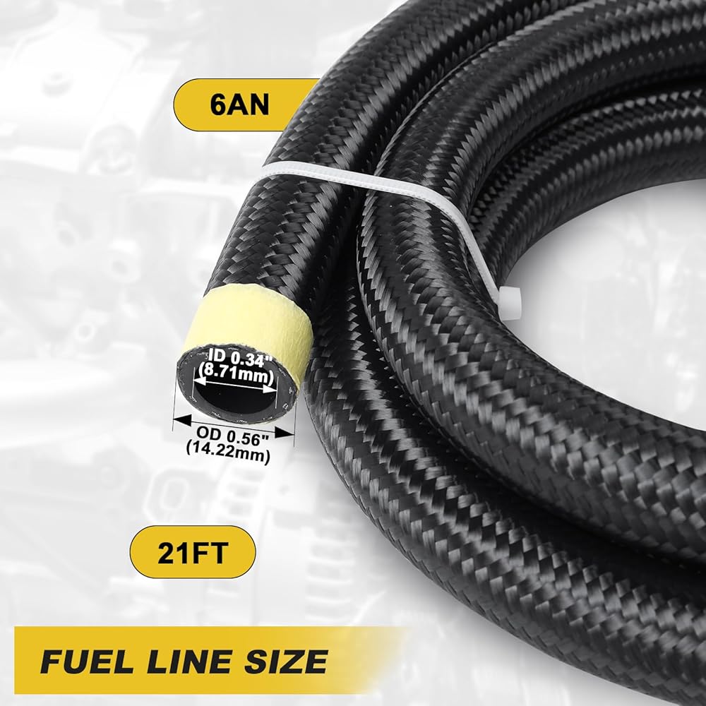 【معلمة المنتج】: id-0.31 "/7.87mm ؛ OD-0.56" /14.22 مم ؛ الطول الإجمالي: 6 قدم. اعمل مع خطوط الوقود 6AN فقط. درجة حرارة العمل: -40 درجة فهرنهايت إلى 248 درجة فهرنهايت (-40 درجة مئوية إلى +120 درجة مئوية) تحت معظم العمليات. ماكس ضغط العمل: 500 رطل. ضغط الانفجار: 2000psi