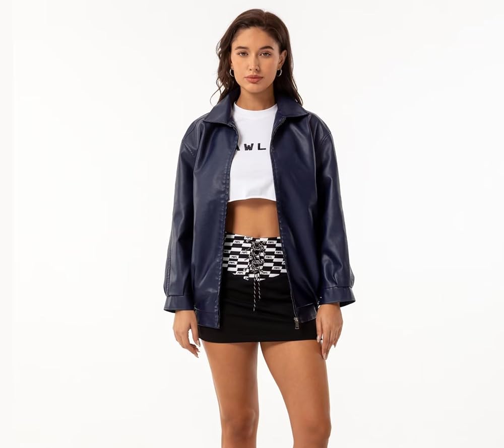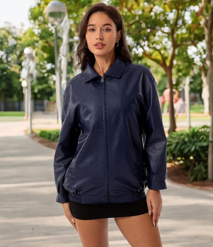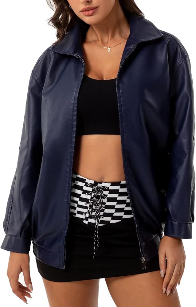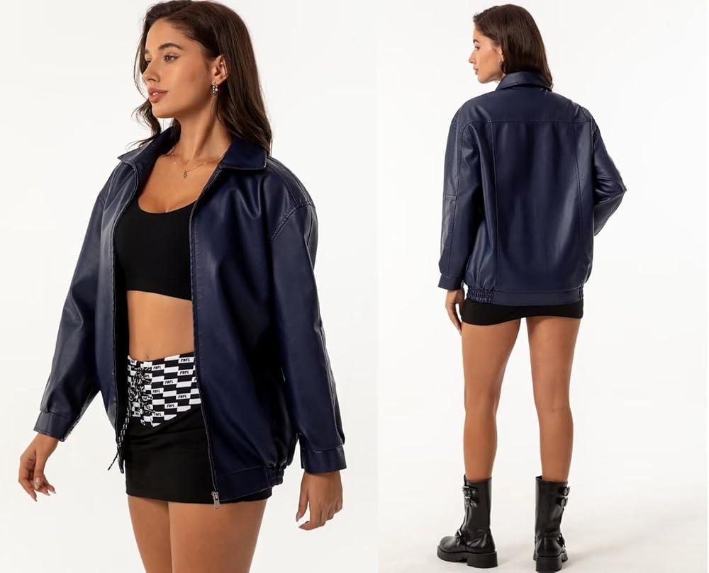 Oversized faux leather jacket/Warm and comfortable/Thick sweater/Faux leather Motocycle Biker Coat/Fashion Short Coat/,Moto Biker Outwear/Bomber jacket women