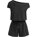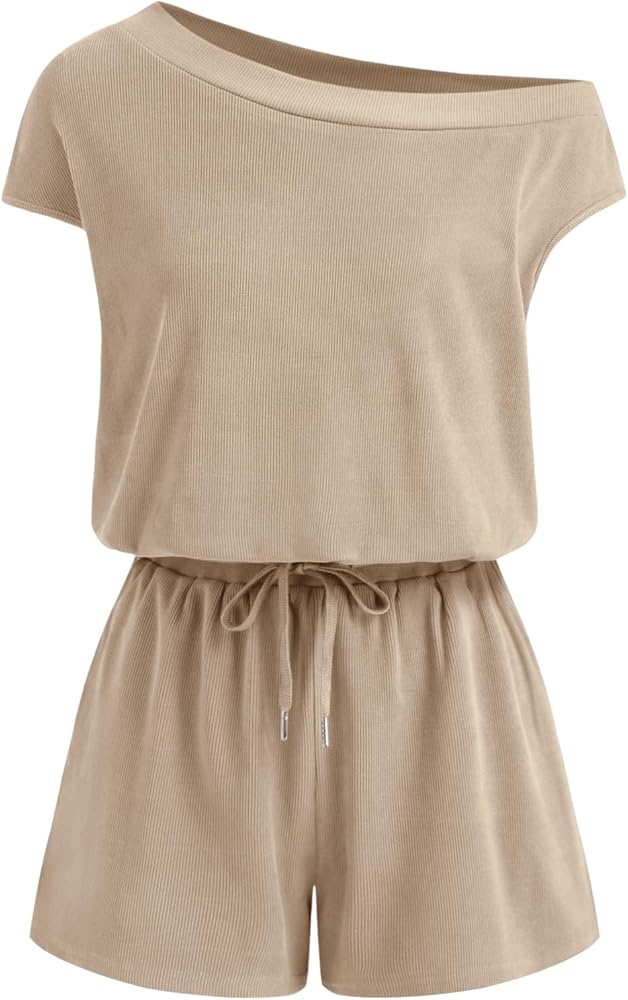 CIDER Rompers for Women One Shoulder Drawstring Short Sleeve Asymmetrical Romper Casual Knit Jumpsuit Lounge Sets