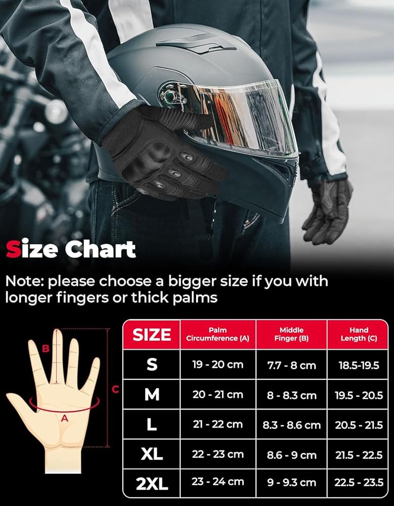 🏍WITH a strong knuckle protector to efficiently absorb pressure, touch screen motorcycle gloves or motorcycle riding gloves have a molded reinforced palm for heavy duty protection against impact and abrasion. Design enhances durability and allows for optimal grip and handling.