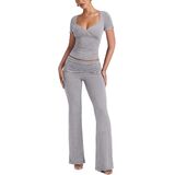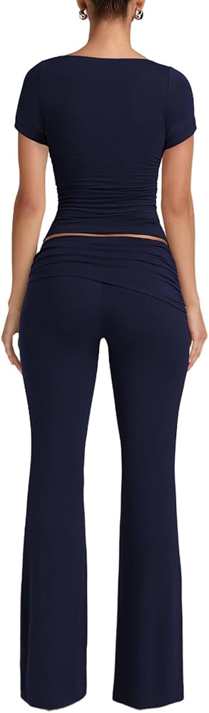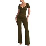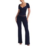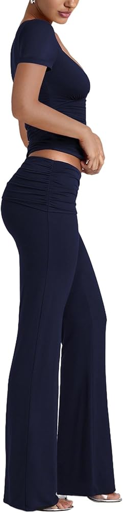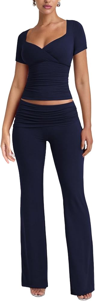 الميزات: Cross V Neck ، أحبة قصيرة ، قمم للمحاصيل للنساء اللواتي يعانين من تصميم جانب الخصر ، سراويل طية عالية الخصر ، مناسبة للفتيات طويل القامة للارتداء ، مجموعات من قطعتين من قطعتين للنساء هي ملابس LDEAL لفصل الربيع الصيفي