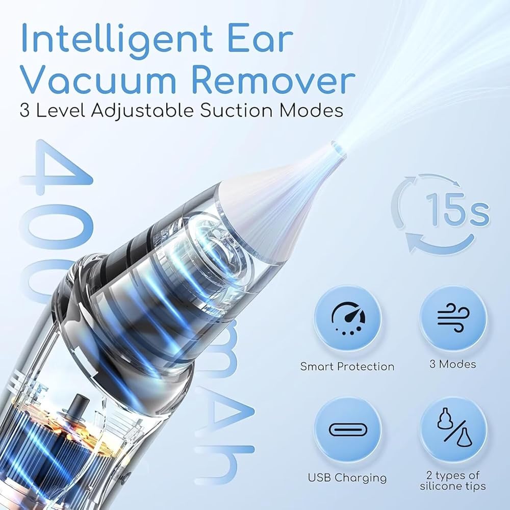 [Longer Lasting & Durable Ear Vacuum for Water] This ear wax remover vacuum cleaner built-in a high-quality 400mAh rechargeable battery, offering a long battery life. It's great for traveling and keeping your ears clean on the go. (usage time depends on the selected suction power)