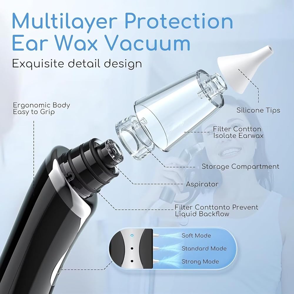 [Newly Upgraded Vacuum Earwax Removal Kit] The ear wax vacuum removal kit has three suction levels, from weak to vigorous. You can choose the appropriate level according to your situation. This new earwax cleaner can effectively remove earwax or water in areas difficult to reach with traditional earwax removal tools.