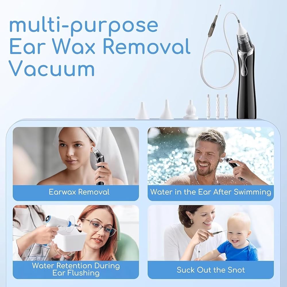 [Ear Wax Suction Vacuum New Experience] The electric ear wax remover vacuum is suitable for family use with reusable replacement ear spoons. The ear suction vacuum sucks away dirt directly without water rinsing, significantly reducing the risk of infection associated with traditional cleaning methods. It is suitable for daily life with water ears after swimming, mucus or clogged ears, and oil earwax.