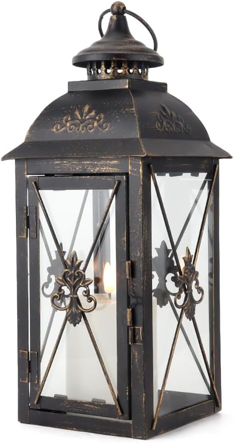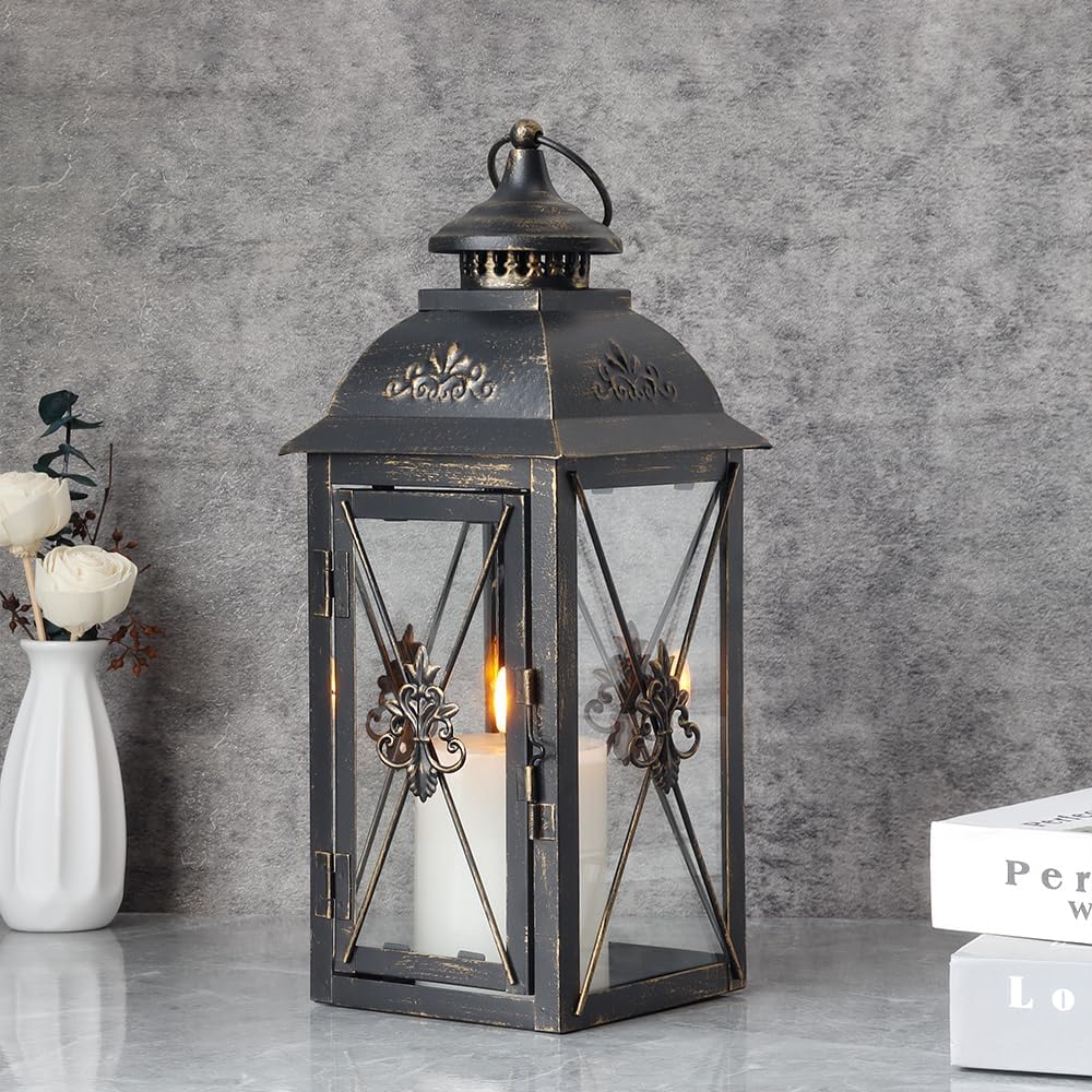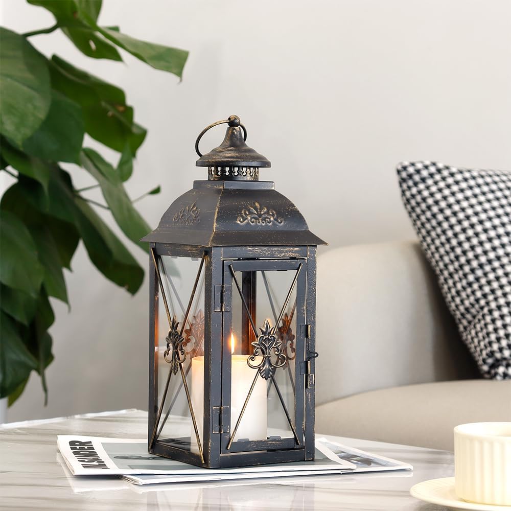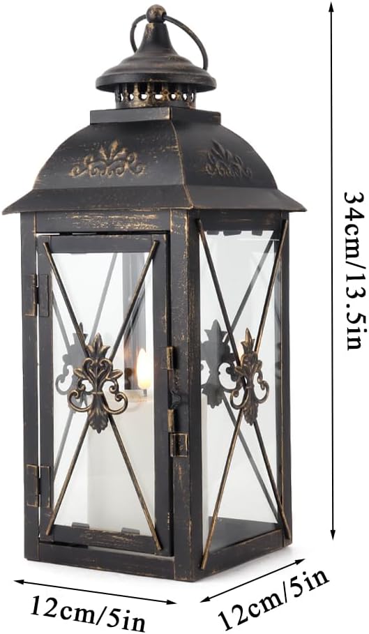 💡【 الميزات المدروسة】 التي تم الانتهاء منها باللون الأسود لمسة متطورة ، تتميز كل فانوس بحلقة تهوية في الأعلى لتعزيز تدفق الهواء وخاتم زخرفي للتعليق المريح. آلية مزلاج بسيطة تؤمن مساحة لشمعة LED بدون طيبة (غير مدرجة) ، وتعزيز السلامة والأجواء.