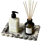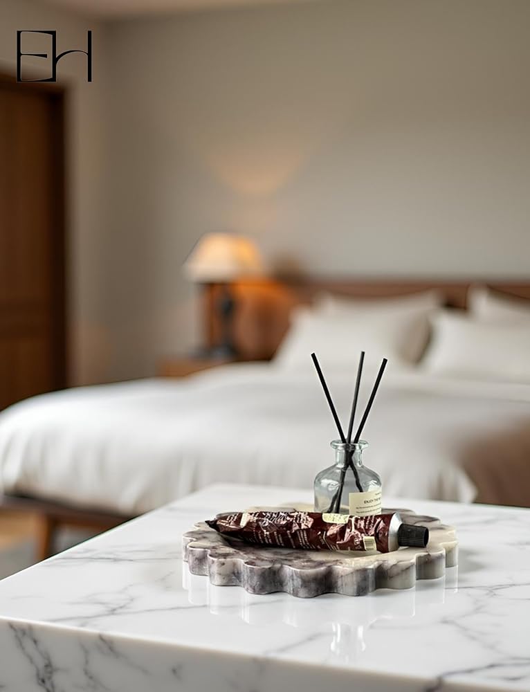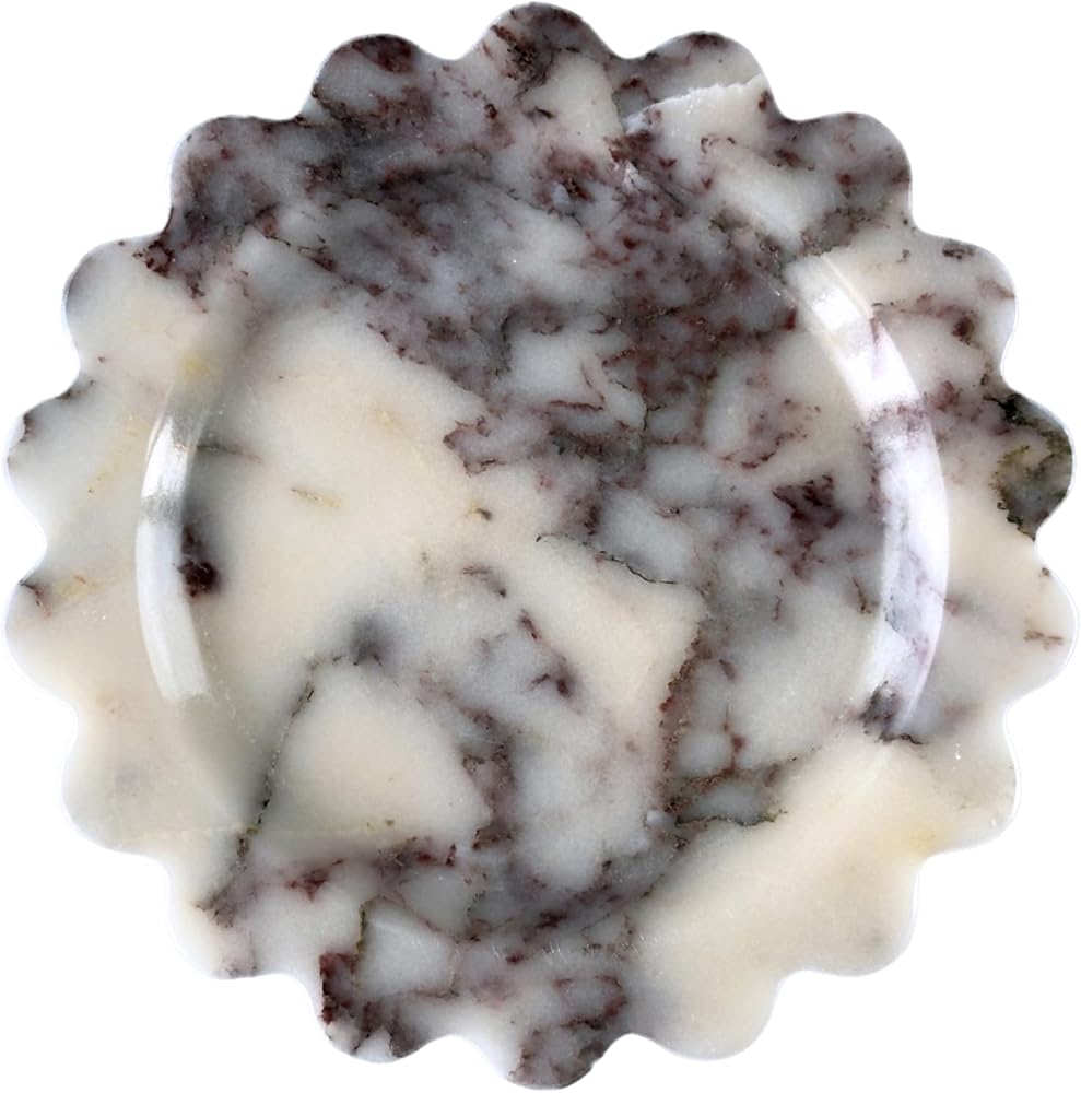 صينية رخامية طبيعية صدفية - صينية حجرية مصنوعة يدويًا مقاس 8 بوصات مع حافة صدفية للعداد، وخزانة الملابس، والغرور، والمجوهرات، ومنضدة النوم والمكتب ديكور الحمام المنزلي (كالكاتا فيولا، مستدير)