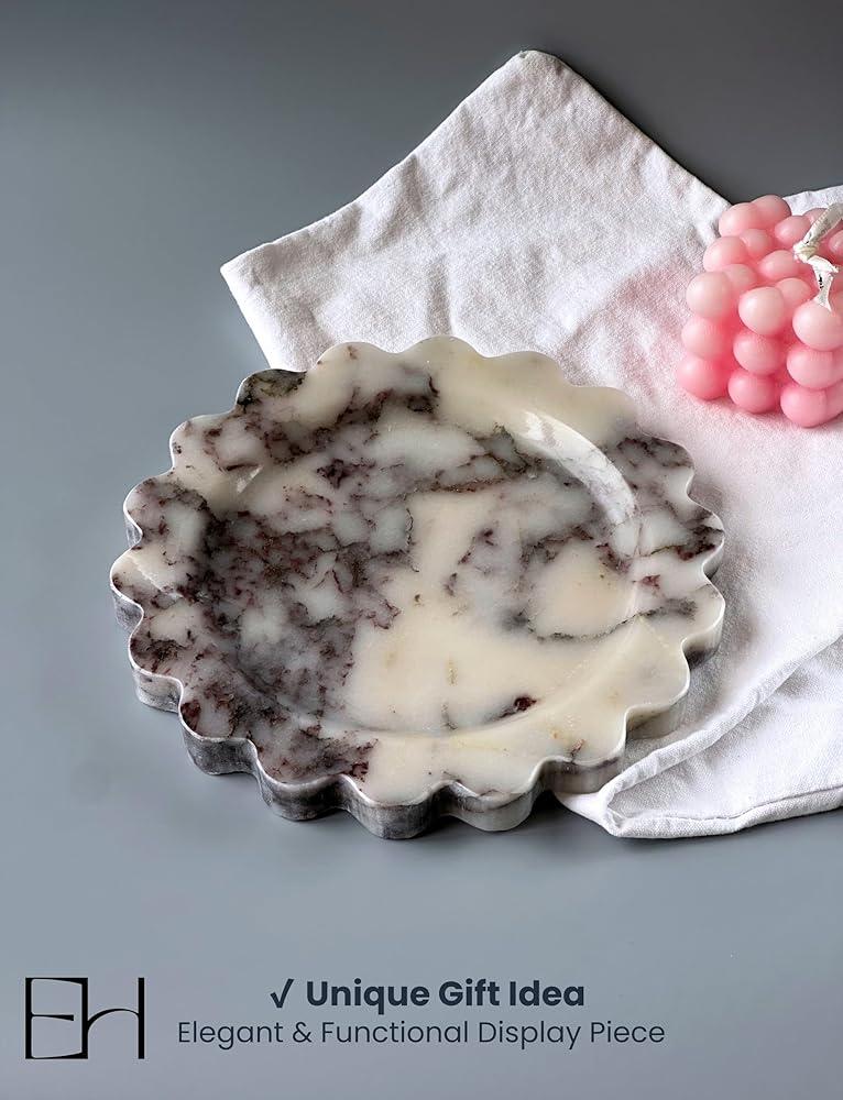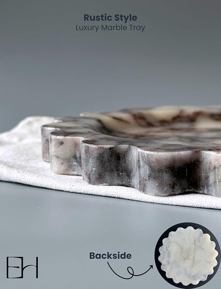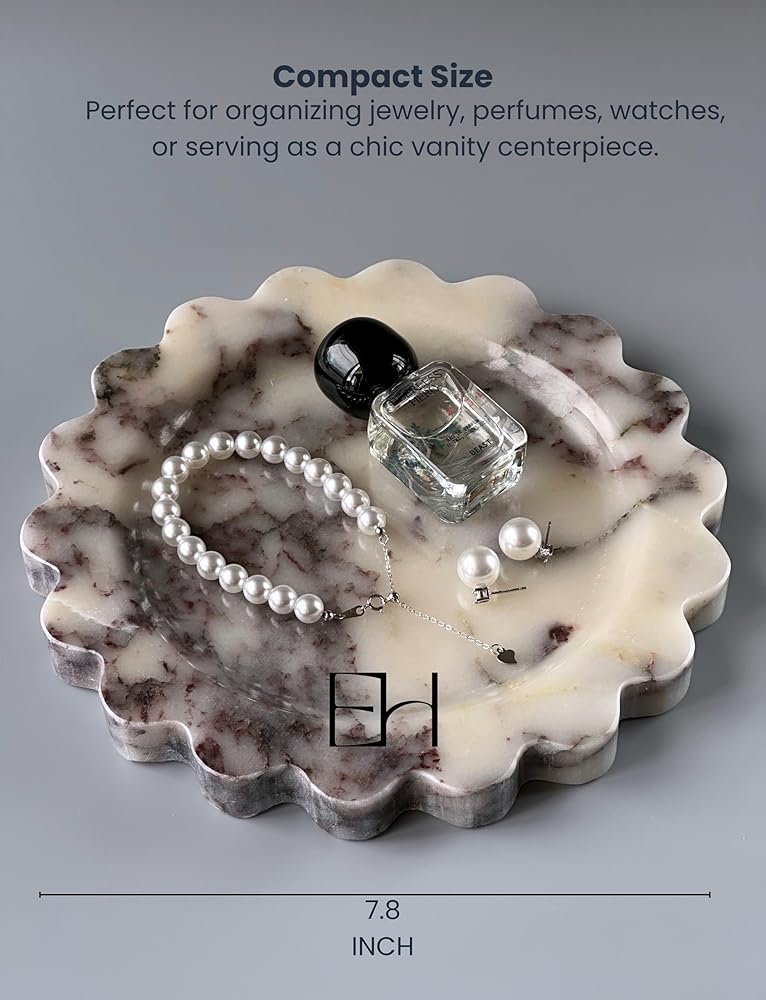 - التصميم متعدد الاستخدامات: صينية مستديرة بحجم 7.5 بوصة مع حواف أسقلفية جميلة مثالية لتنظيم المجوهرات أو مستحضرات التجميل أو العناصر الزخرفية.