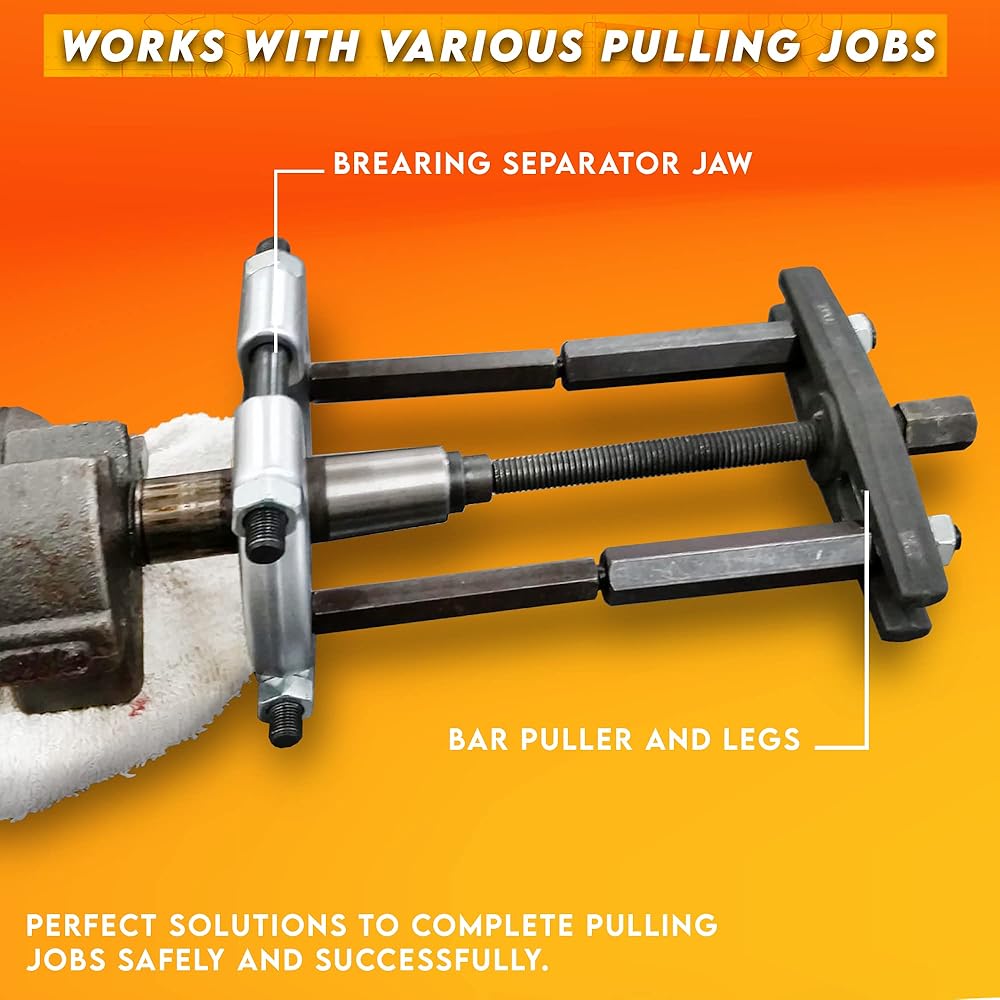 متينة وقوية: مصنوعة من هيكل متين مطروق ومعالجة بالحرارة لتحمل المهام الصعبة والقاسية، مما يجعل مجموعة أدوات سحب المحمل هذه أداة موثوقة وتدوم طويلاً.