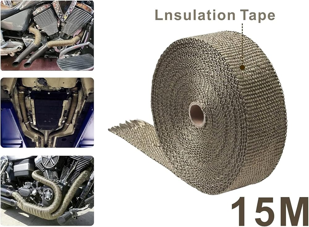 【ما تحصل عليه】 1 لفة من 2 بوصة (50 مم) عرض 50 قدم (15M) لف العادم التيتانيوم الطول لعلاقات أنابيب الدراجات النارية + 16pcs الصلب المقاوم للصدأ.