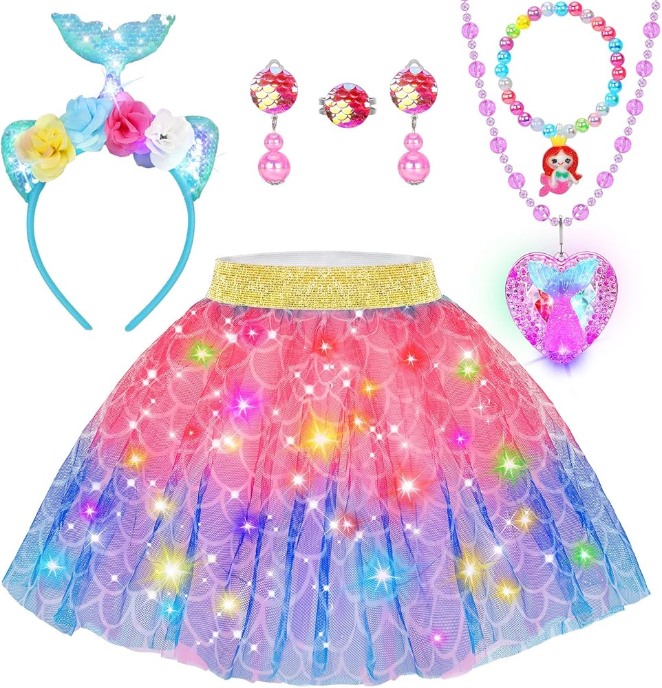 Unicorn Toys for Girls Age 4-6-A vibrant rainbow LED tulle skirt adorned with adorable pony prints,light-up unicorn headband, ring, earrings, bracelet, light up necklace. Every piece is designed to bring a touch of magic to any special event.Beckons your child to embrace their inner unicorn and embark on a captivating journey where every moment is a fairytale brought to life.Perfect unicorn rainbow tutu dress for 3 4 5 6 year old girls imaginative play on birthday or on unicorn party