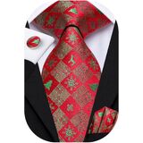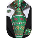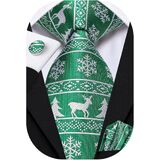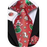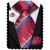 Hi-Tie Christmas Ties for Men Silk Men's Ties and Pocket Square Cufflinks Novelty Christmas Gift for Men