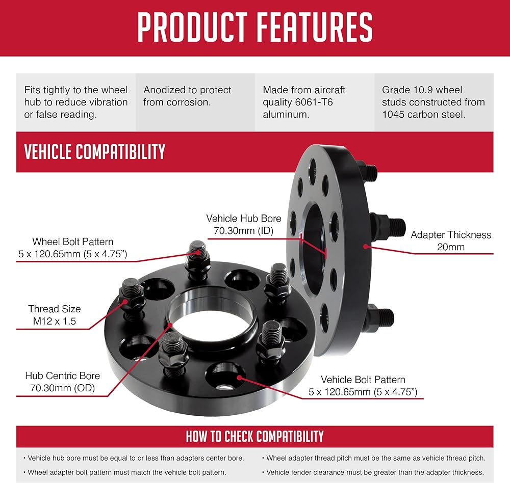 مصنوعة من الفواصل لدينا من سبيكة الألومنيوم 6061-T6 مزورة. كل فاصل هو أسود مختلط مما يعزز بشكل كبير من صلابة وتآكل مقاومة. ترصيع SAE 10.9. تضمن مخارط CNC وآلات الطحن نوبة دقيقة لمركز سيارتك القضاء على الاهتزاز المحتمل.