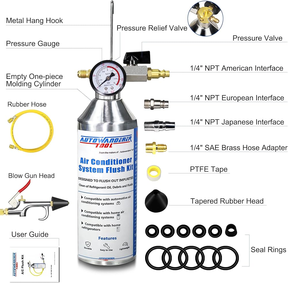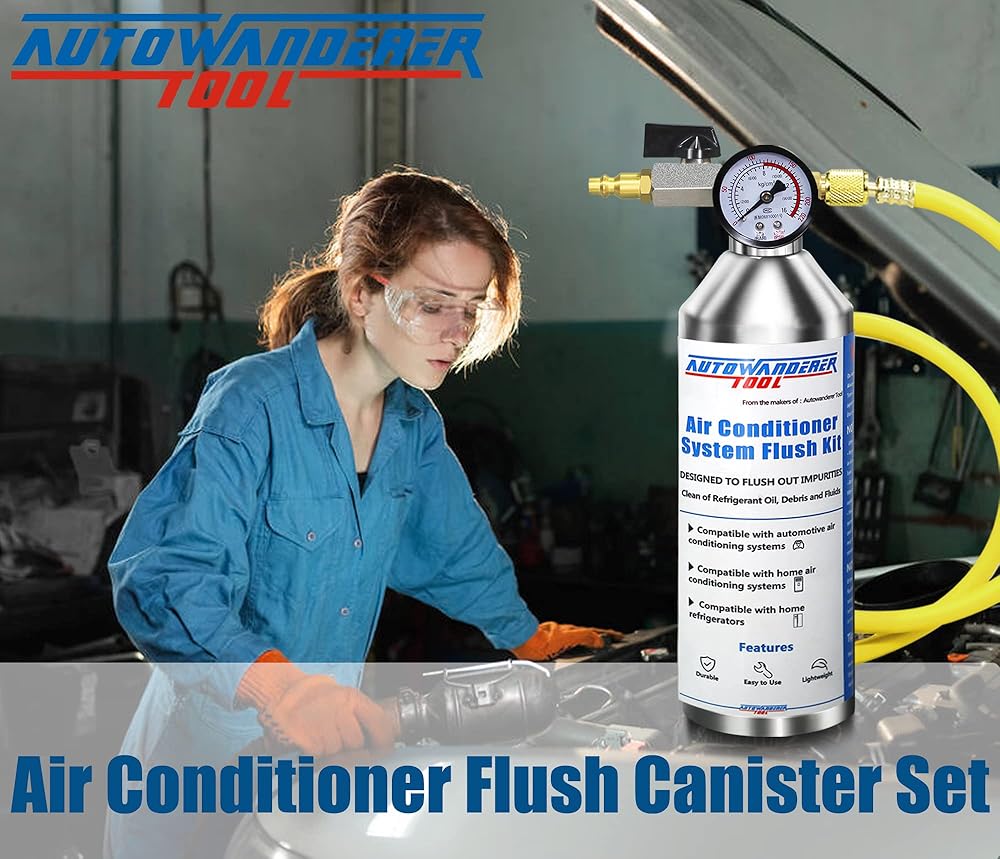 --عند تعديل أو استبدال نظام تكييف الهواء. مجموعة مكيفات الهواء هذه تزيل زيت التبريد وسوائل النفايات والحطام المعدني. زجاجة الفولاذ المقاوم للصدأ أقل عرضة لأن تتساقط من الحطام المعدني مقارنة بزجاجة التنظيف المصنوعة من الألومنيوم.