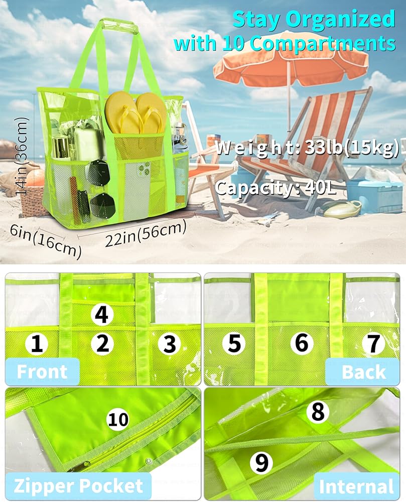 • 【10 جيوب تمامًا لـ】 maffuno bag ، تتميز بحقتين كبيرتين وجيب سحاب للأحذية والكرات والمكياج وأدوات النظافة والبطاقات. توفر جيوب الشبكية الخارجي المرن الرملي 7 مناطق منفصلة لزجاجات المياه الكبيرة والصنادل والمظلات والمزيد - تحفظ كل شيء منظم وفي متناول اليد. يتيح لك التصميم الشفاف اكتشاف أساسياتك وتوفير الوقت والمتاعب بسرعة