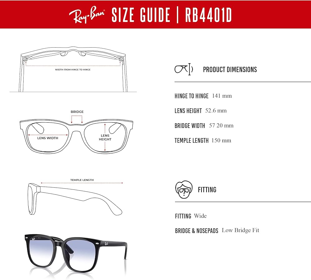 RB4401D Frame مناسب: مناسب مع جسر منخفض ، مثالي لأشكال الوجه الأكبر أو أولئك الذين يبحثون عن تغطية إضافية وراحة مع جسر الأنف السفلي. يضمن الإطار البلاستيكي المربع ذو الوزن الخفيف ولكنه المربع تآكلًا طويل الأمد ، في حين أن مزيج التصميم الكلاسيكي والتكنولوجيا المتطورة يضيف مظهرًا جديدًا مع جاذبية كلاسيكية.