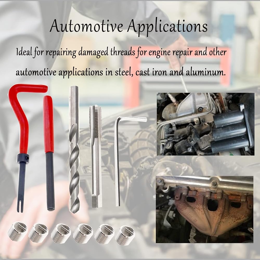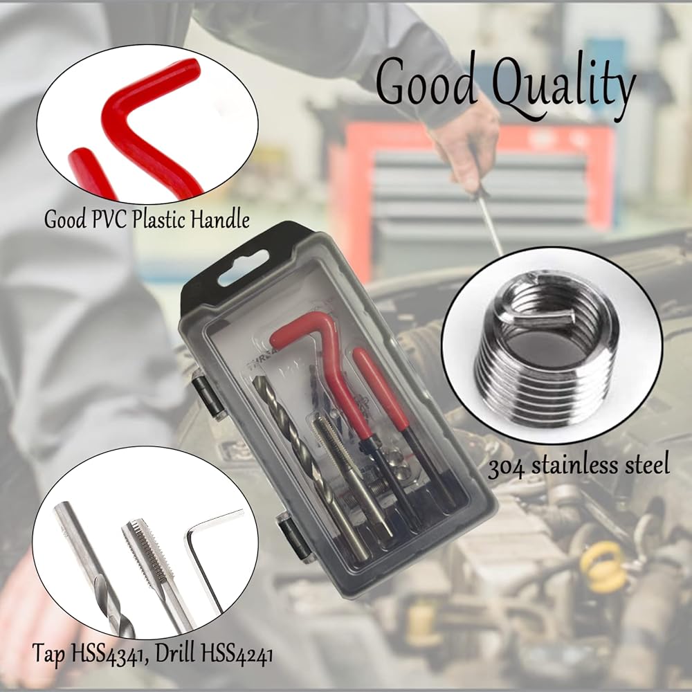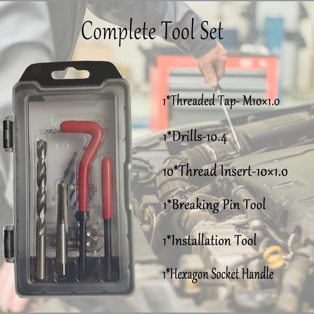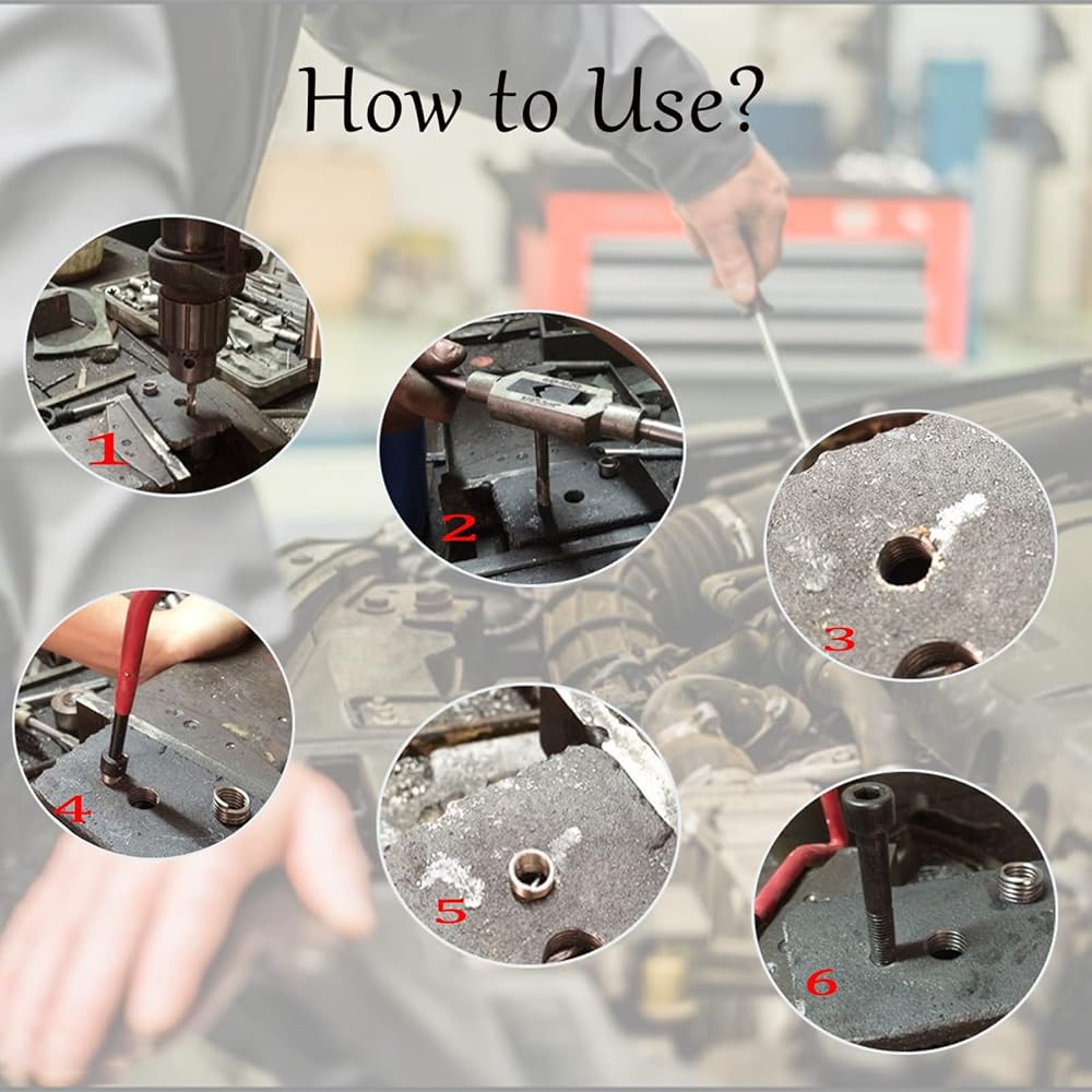 ✉Complete Tool Set✉ Including thread inserts, drill bits, thread tapping, insert installation, and ear break tools. Contains all the tools you need to repair broken threads, which can greatly improve your work efficiency and save manpower.