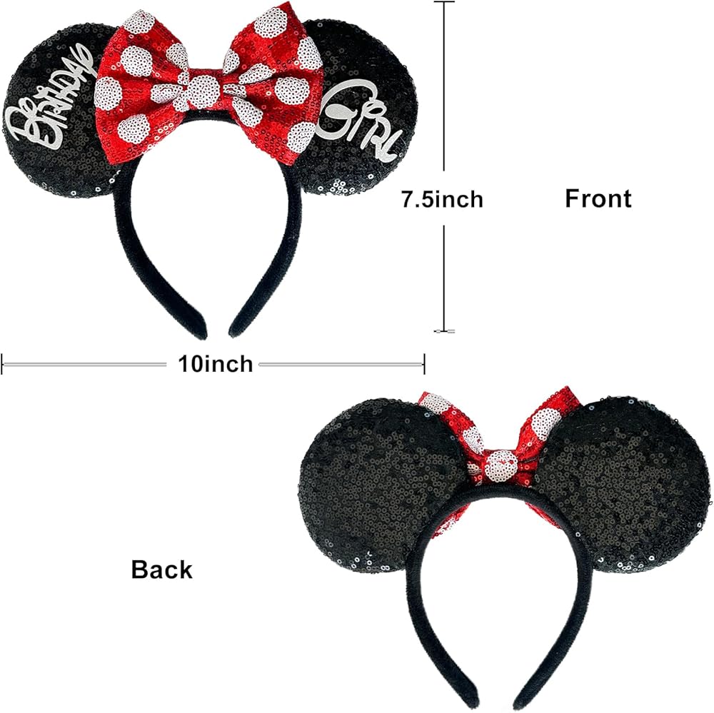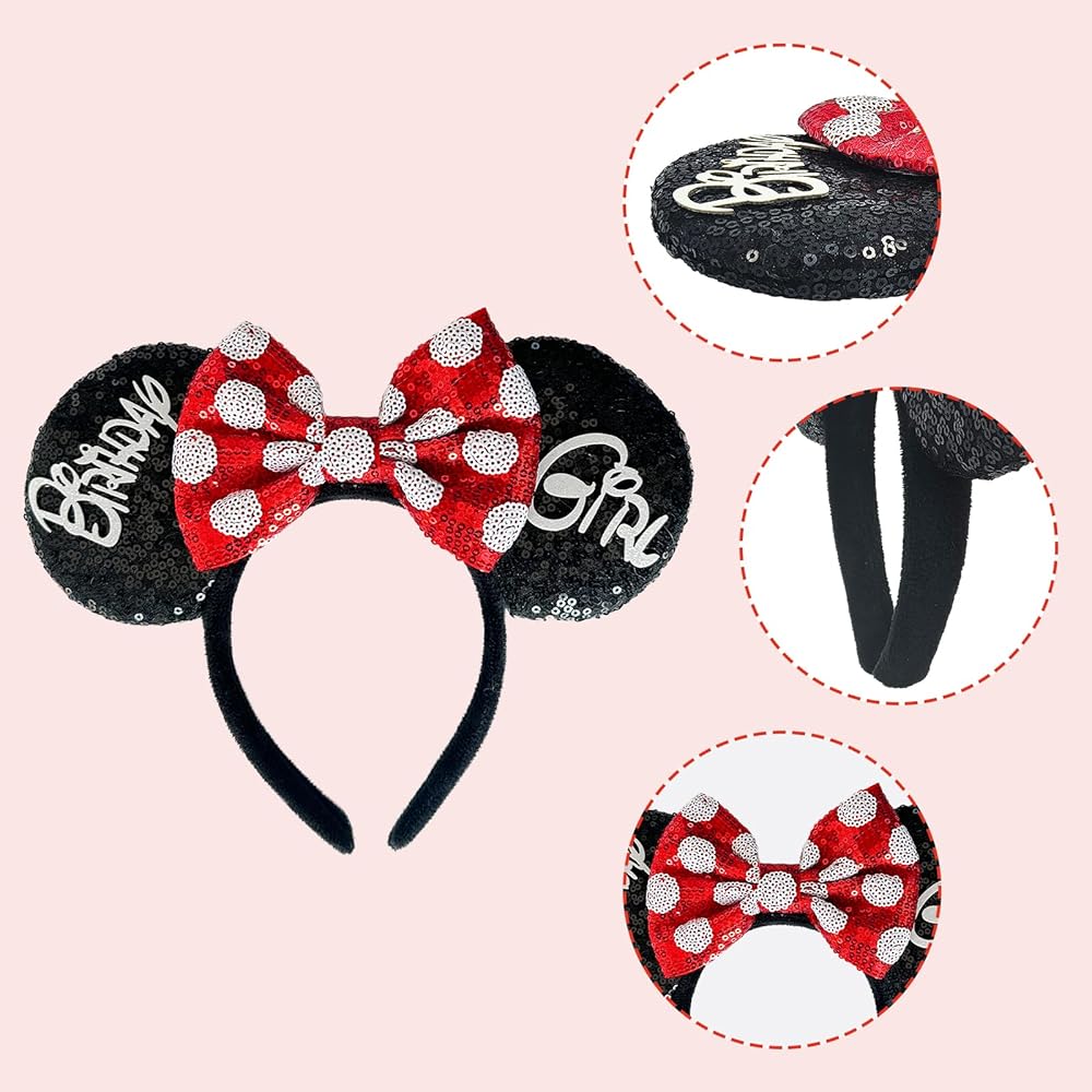 Made Hande: كل آذان آذان عقال يدوي بدقة باستخدام مواد متميزة. يثبت خياطة الدقة المعززة الأذنين والأقواس بحزم ، تم تجهيز عصابة الرأس بأذنين من الماوس اللامع الجميل والأقواس اللامعة والترتر الضيق. سوف تزين رحلة حديقة الملاهي بشكل جيد.
