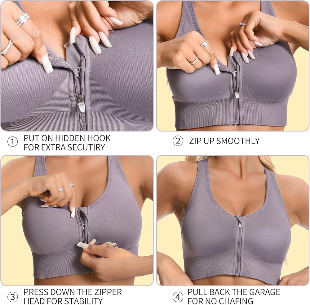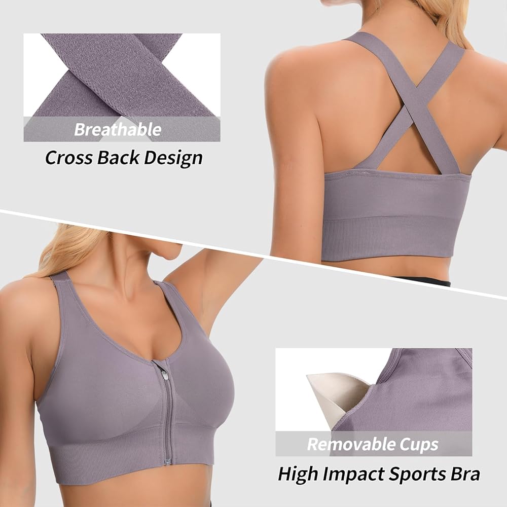 منصات قابلة للإزالة: Zip in Front Sports Bra مع أكواب الحشو القابلة للإزالة ، توفر راحة داعمة وملاءمة قابلة للتخصيص ، ناعمة ومريحة للارتداء.