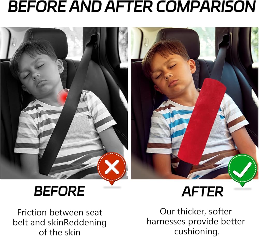 【Easy to Install】: The product is easy and quick to install without any tools. You just need to put the pad over the seat belt and fix it using the nylon sticker. The sticker has good adhesion, it is not easy to come off after sticking, you can use it without any worry.