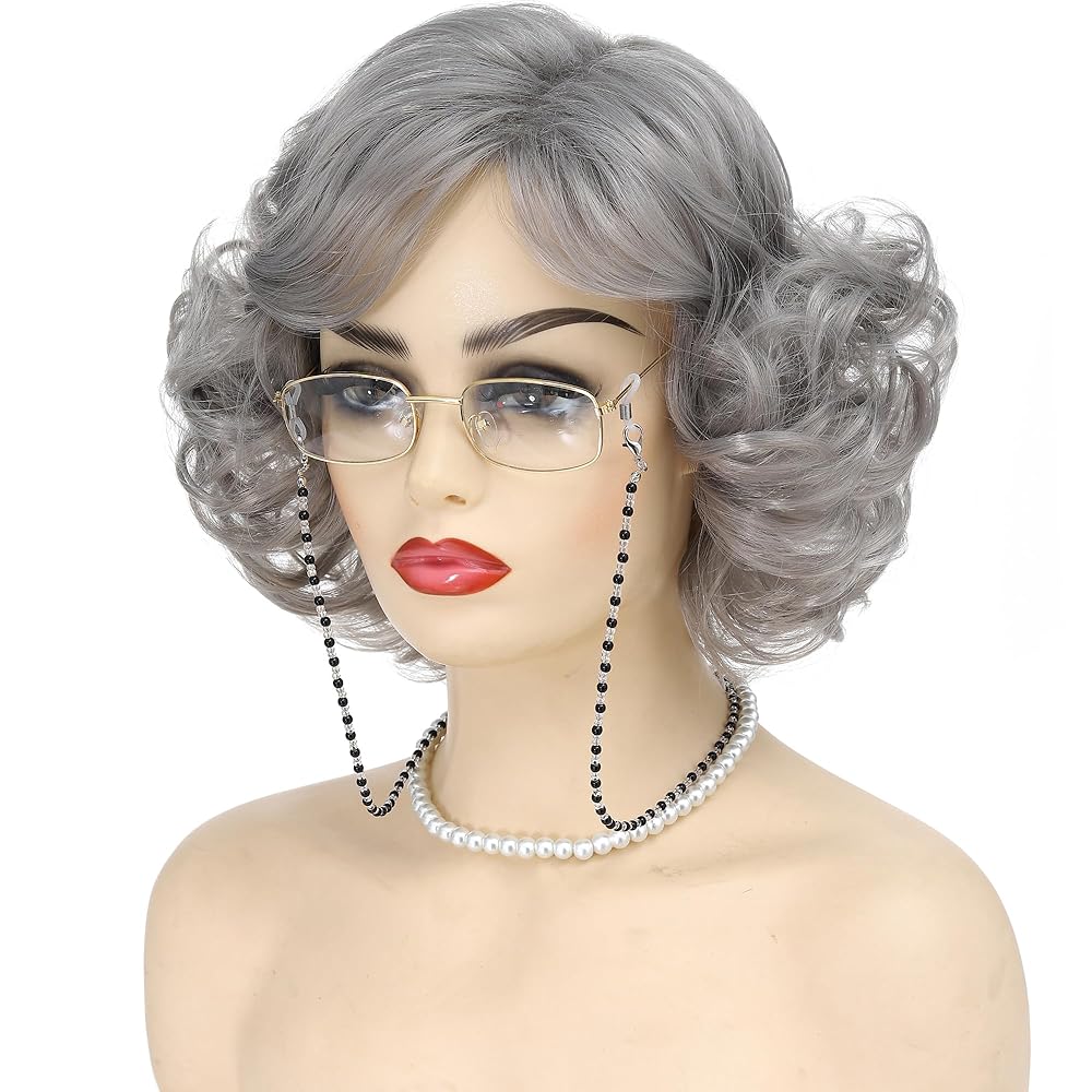 زي السيدة العجوز للنساء سهلة التصميم: يتطلب تصميم شعر مستعار قصير مجعد الحد الأدنى من الصيانة ، مما يجعله مثاليًا للتحولات السريعة