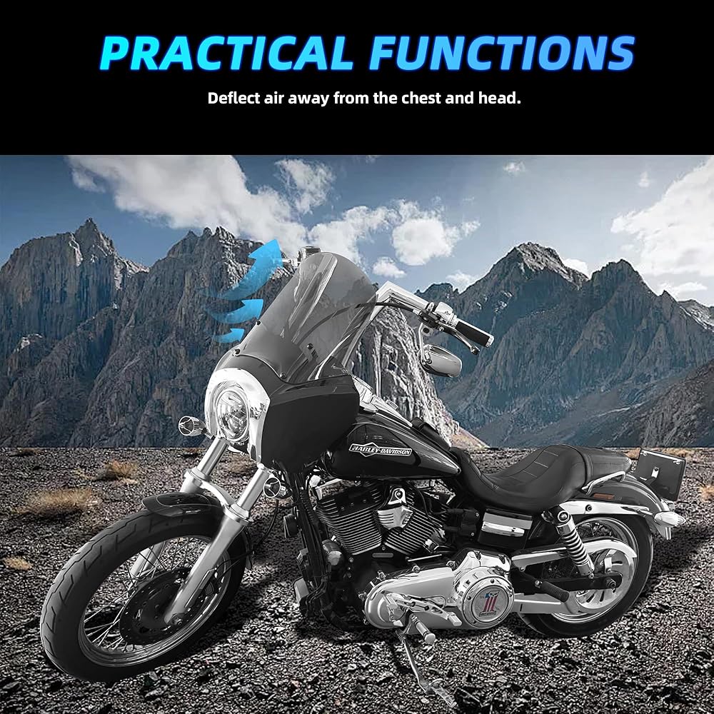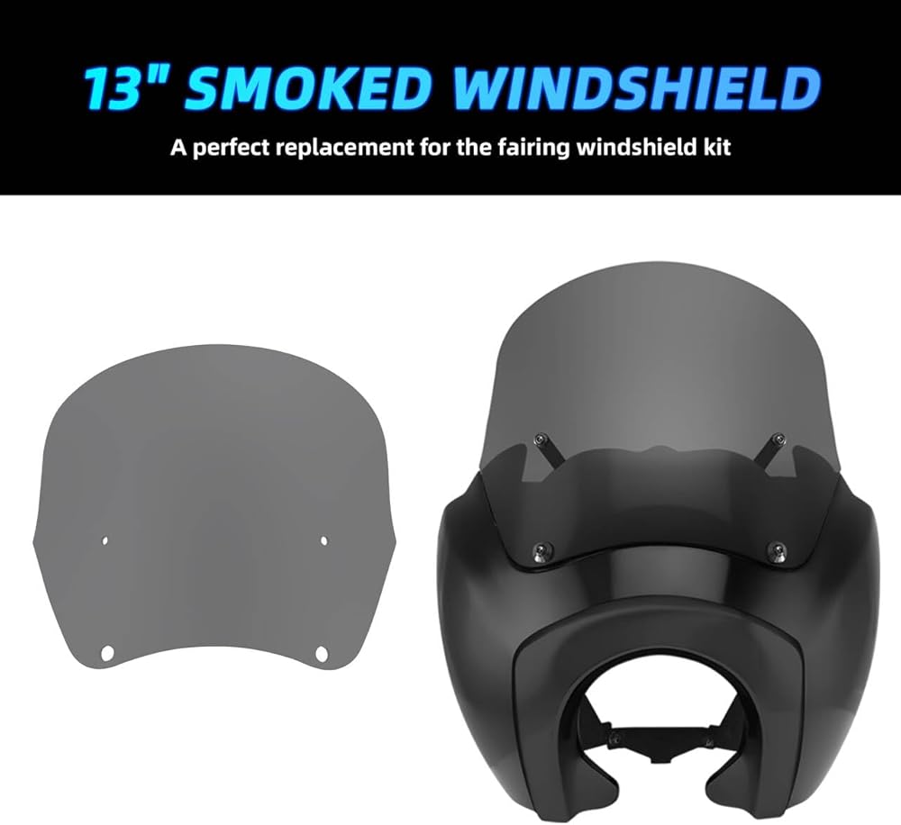 • Custom Fit: 13” smoked motorcycle windshield, compatible with Harley T-Sport fairing windshield kit