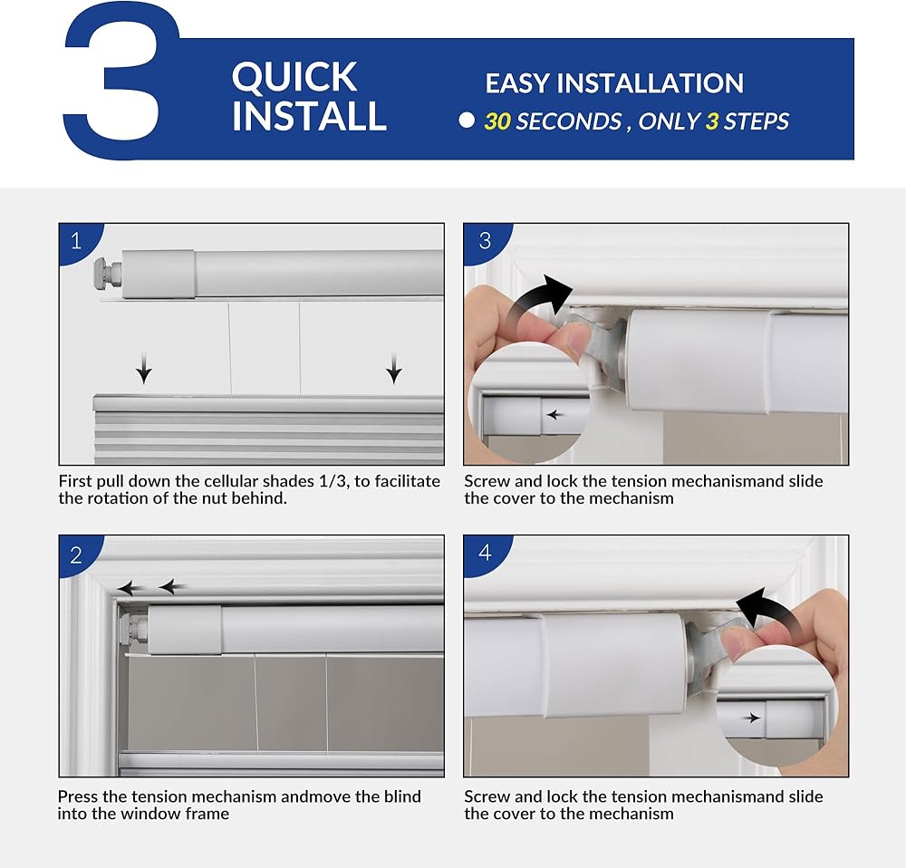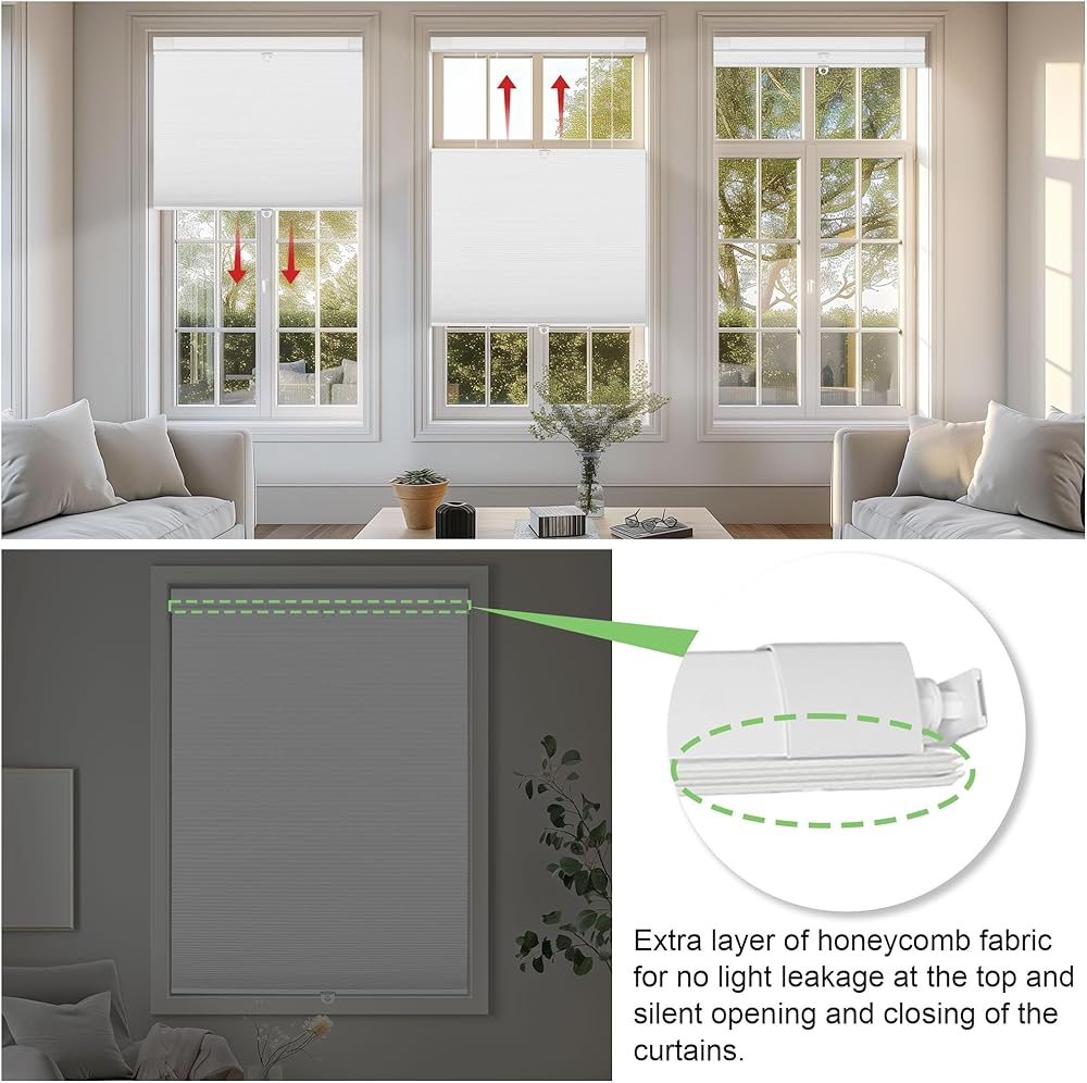 • No drill top down bottom up cellular shades, Convenient and easy installation without drilling holes.