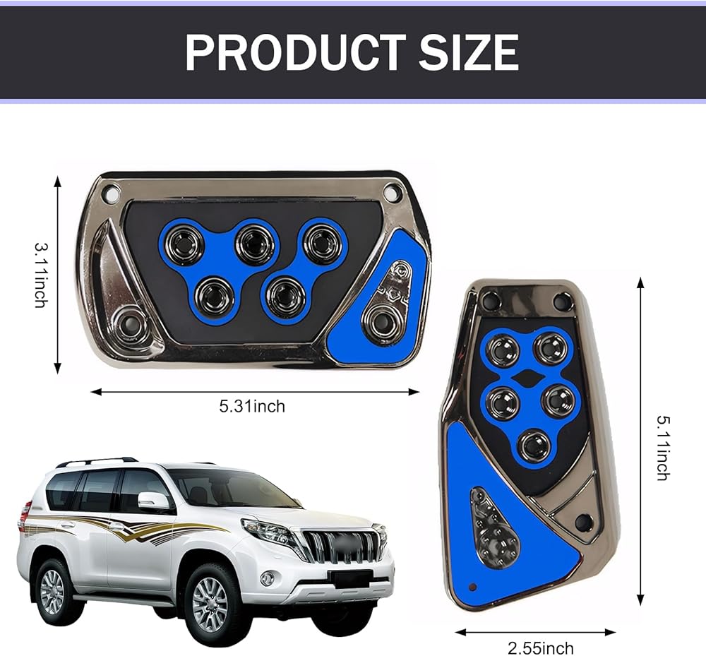 Product Description:1.This car brake pedal cover measures 5.31 inches x 3.11 inches, accelerator cover measures 2.55 inches x 5.11 inches.