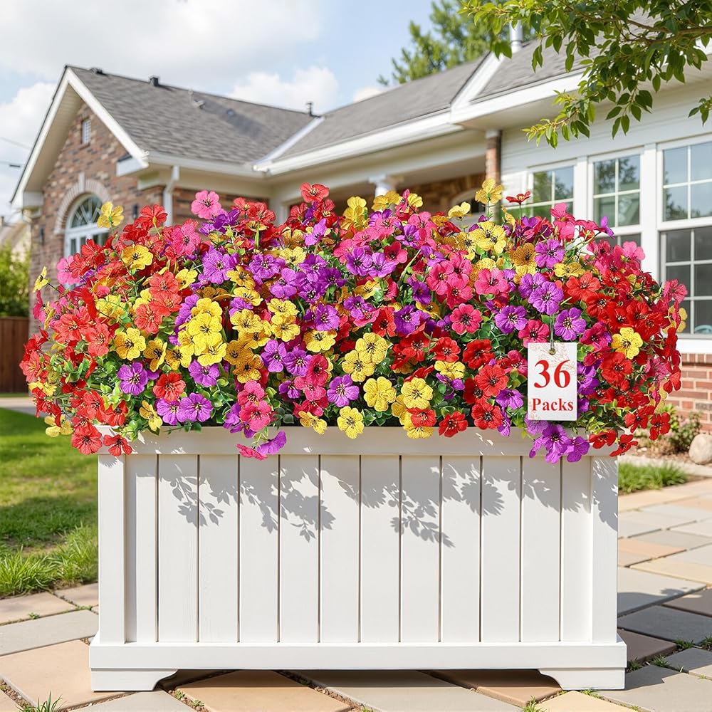 🌸【 مثالية للزهور في الهواء الطلق/الداخلية】 الزهور البلاستيكية مثالية للشرفة في الهواء الطلق ، الممر ، صندوق نافذة المدرجات ، الفناء الأمامي ، الأواني ، المزارعون المعلقة ، الحدائق ، المناظر الطبيعية ، النافذة ، تسمح لك بلون جميل طوال العام. كما أن تناسب أعياد الميلاد ، وحفلات الزفاف ، والمكان التذكاري أو القبر ، يمكنهم العيش في أي مكان وتحمل عواصف وممطار غزيرة.