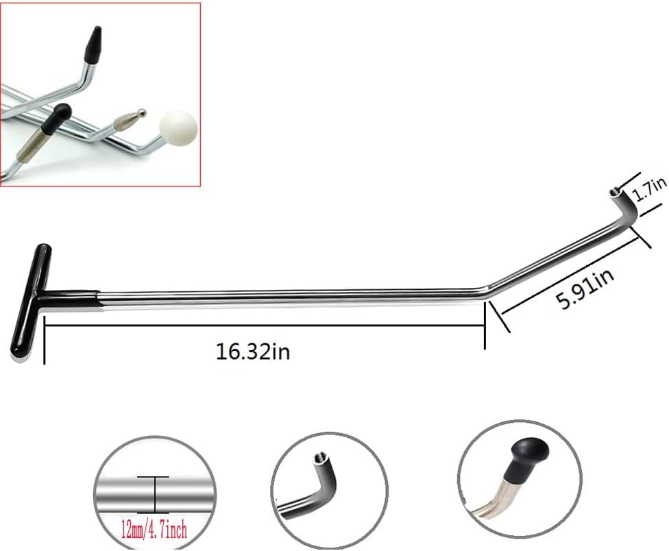 The diameter of the hook is 12mm and durable enough to push up the dent without bending or breaking. Corrosion resistance steel of our dent removal rods won't rust and keep bright finish all the time.