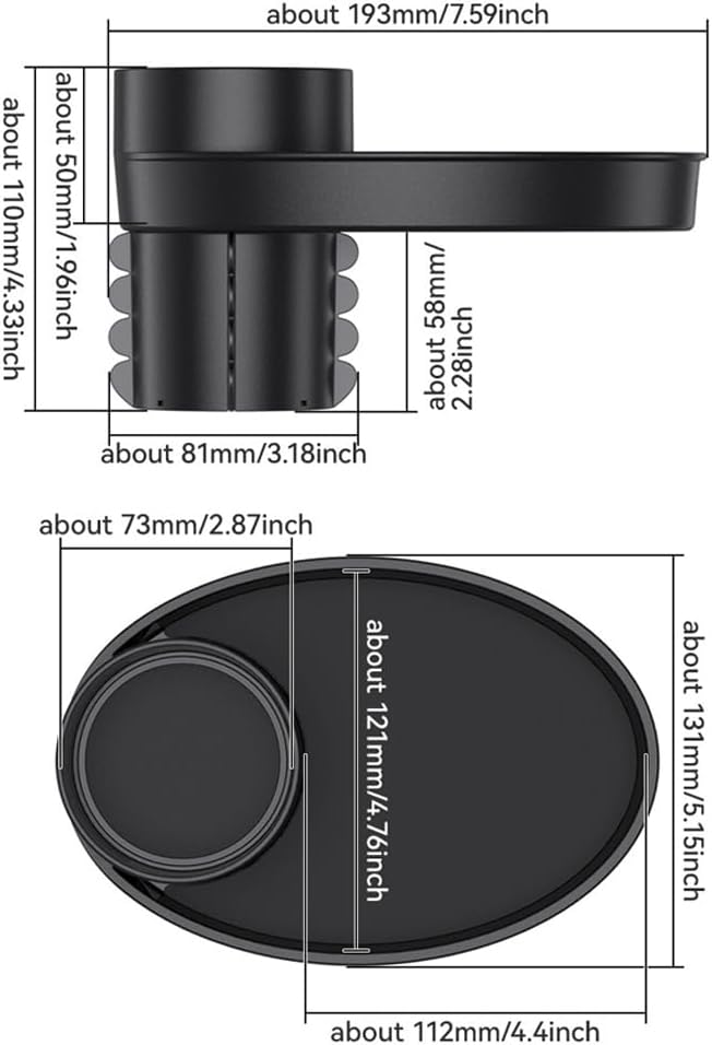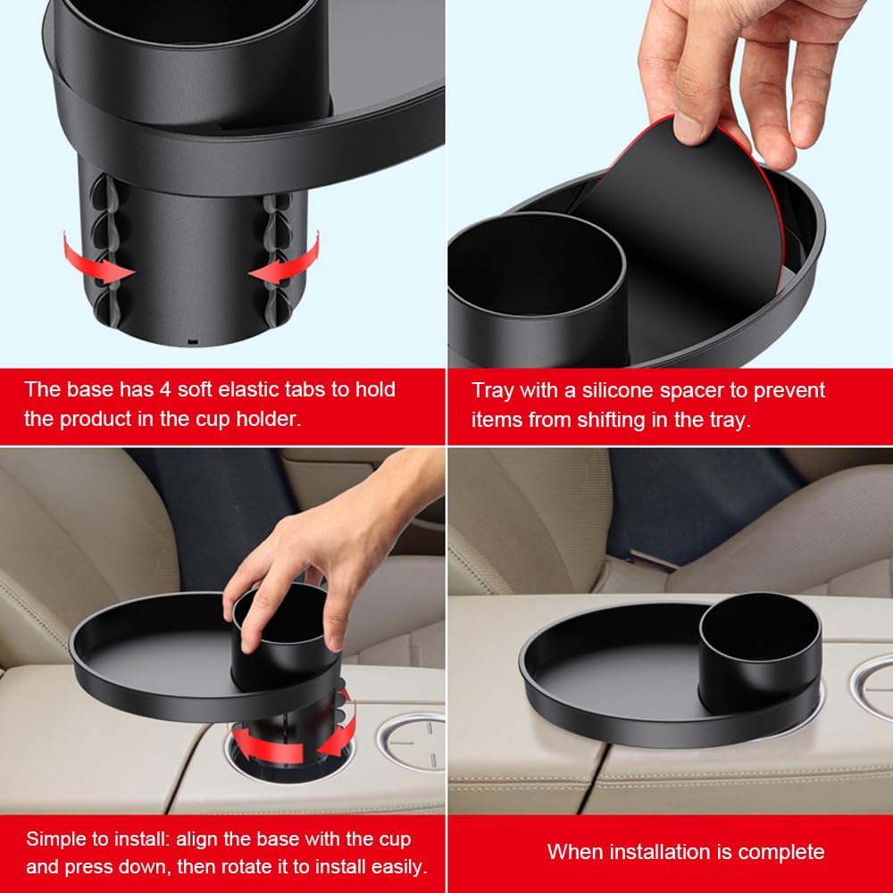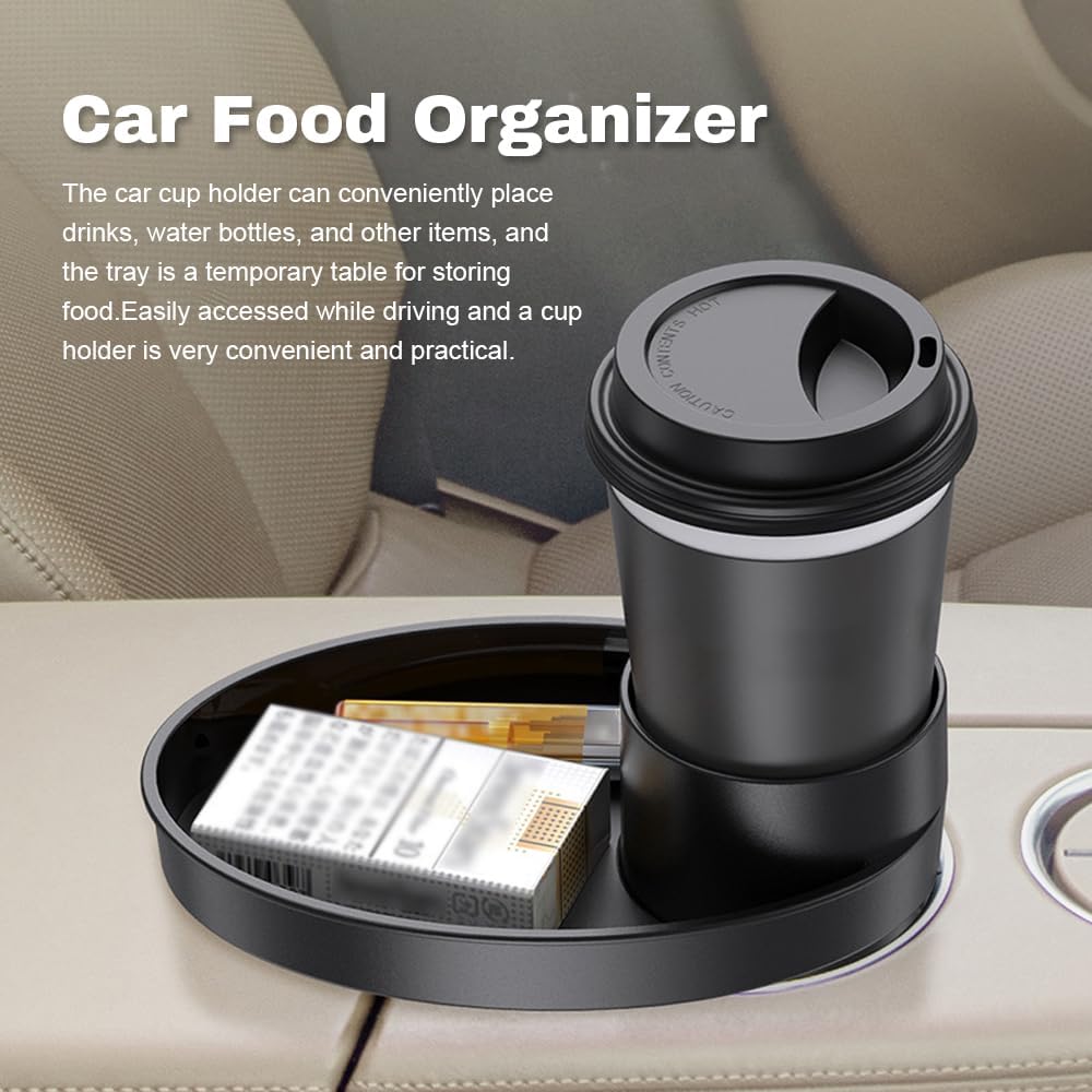 • Rotatable Design: The cup holder with a 360° rotating tray is convenient for drivers and passengers to use. The car cup holder plate can be used for dining in the car or as an additional area for placing mobile phones while driving.