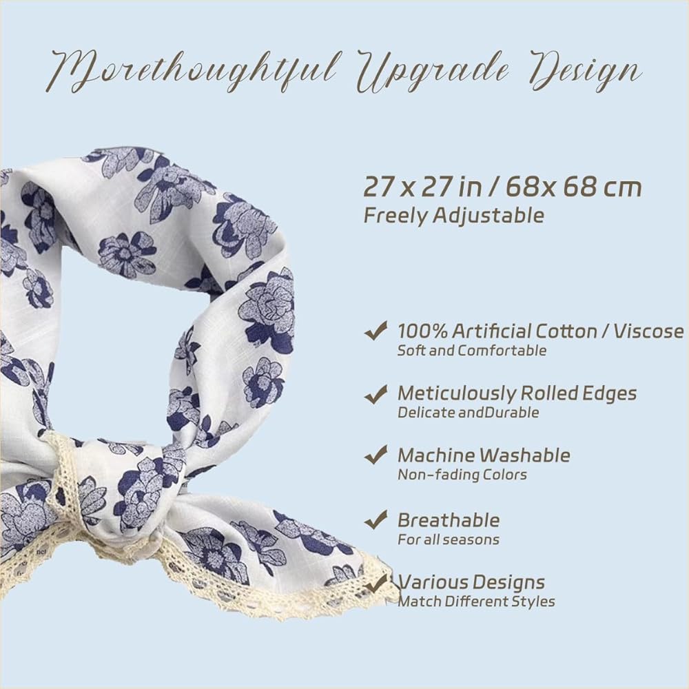 غير صالح للاستخدام: يبلغ قياس وشاح مربع القطن 23 × 23 بوصة ، قابلة للتعديل ويمكن استخدامه كربطة عن الشعر ، وشاح الشعر ، وشاح مضيفة ، وعصابة ، أو معصم ، ومنديل الحزام ، و Bandana ، ويمكن أيضًا ارتداؤها على القبعات ، أو حقائب اليد ، أو تغطية الهدايا ، أو أي ملحقات جميلة. يمكنك استخدامه على مدار السنة.