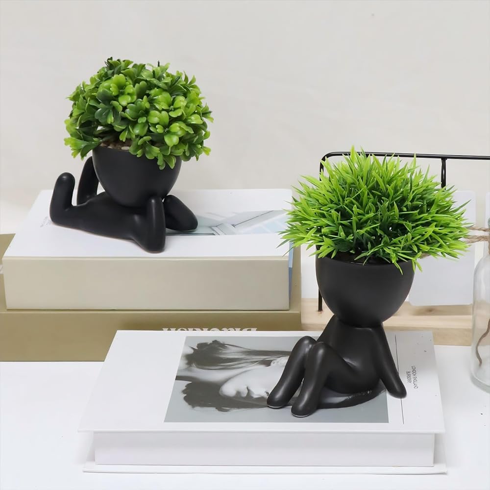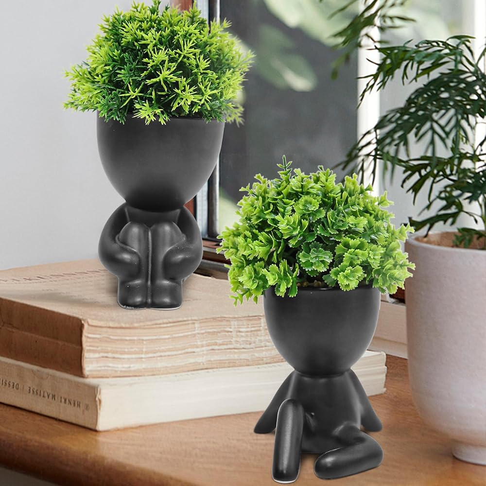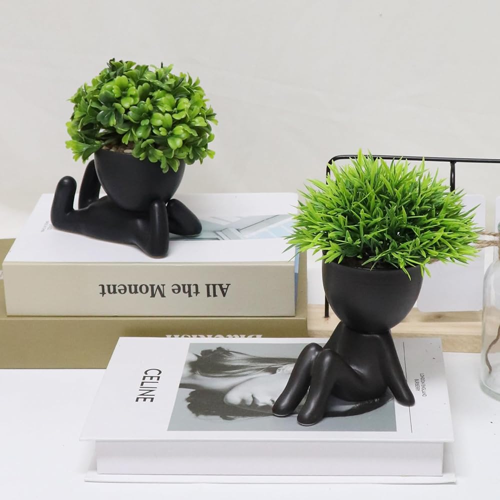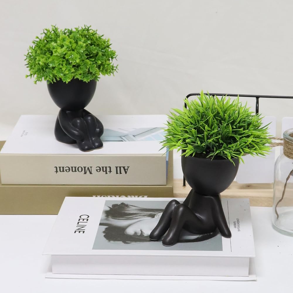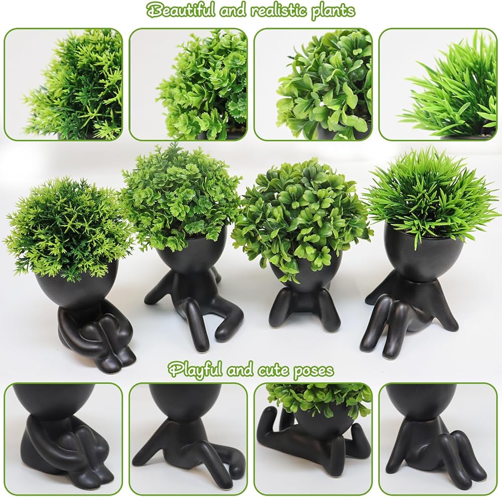 🎁🎁【 ما ستحصل عليه】: مجموعة من 4 أنماط مختلفة من النباتات المصطنعة المصطنعة مع الأواني البشرية الخزفية الإبداعية والتربة المحاكاة ، والتي تُحوِّن الخضرة البسيطة المثالية لحياتك.