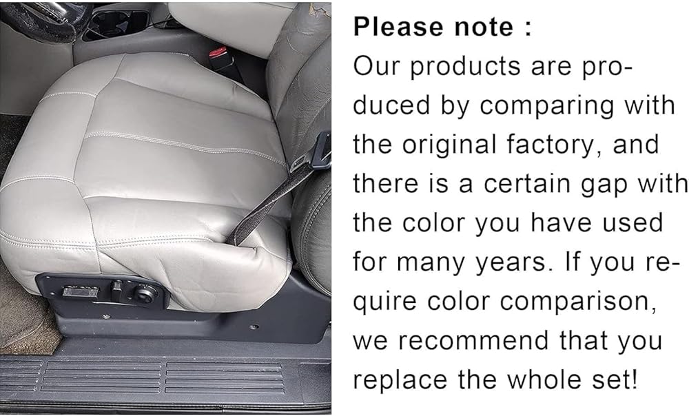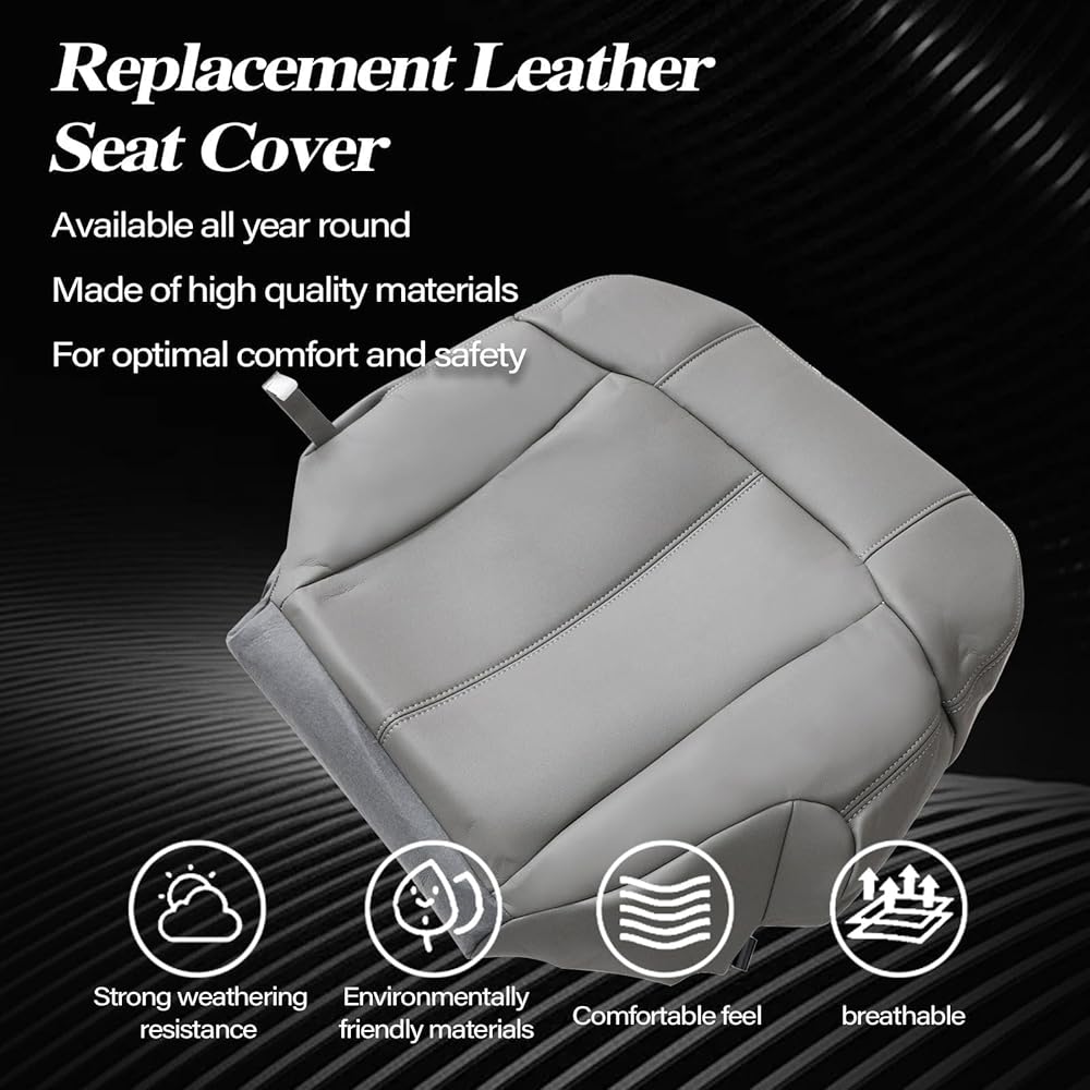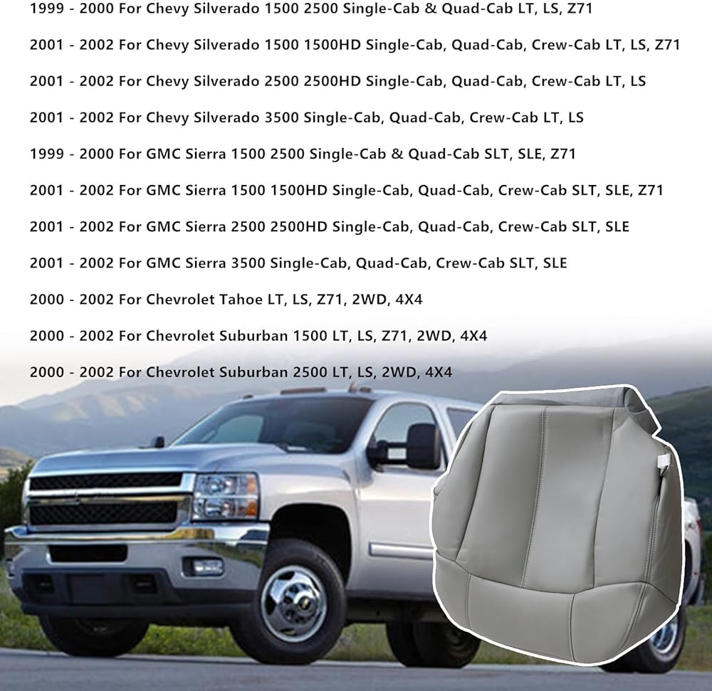 Secosautoparts السائق السائق السفلي البديل غطاء المقعد الجلدي بيوتر الرمادي #122 922 متوافق مع تشيفي سيلفرادو تاهو سوبربان GMC Sierra 1500 2500 3500 1999 2000 2001 2002
