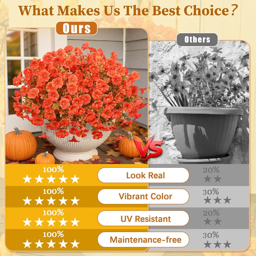 • 【لا توجد صيانة وطازجة خالدة】 الزهور المزيفة للمزارعين في الهواء الطلق توفر جمالًا خاليًا من الصيانة-لا سقي أو تقليم أو صيانة موسمية مطلوبة. يوفر استثمار واحد أناقة دائمة مع التخلص من الحاجة إلى عمليات شراء الزهور الطازجة المتكررة وصيانة. تطابق بسهولة أي تفضيل على النمط ، وجلب سحر والأناقة الخالدة.