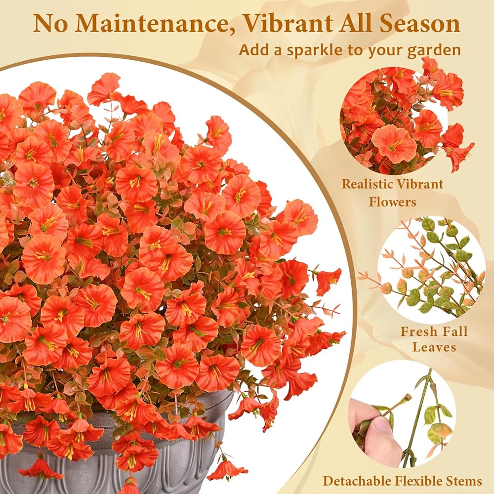 • 【الألوان النابضة بالحيوية والجمال الأبدي】 مصممة بألوان نابضة بالحياة وجذابة ، فإن هذه الزهور المزيفة في الهواء الطلق تشع الطاقة والأناقة ، ومزج التفاصيل النابضة بالحياة مع لون جريء طويل الأمد. علاوة على ذلك ، فإن الألوان الزاهية والحيوية لأمجاد الصباح تجعلها مثالية للزخارف في الربيع والصيف ، مما يجلب لك الفرح البصري والشعور بالراحة للروح.