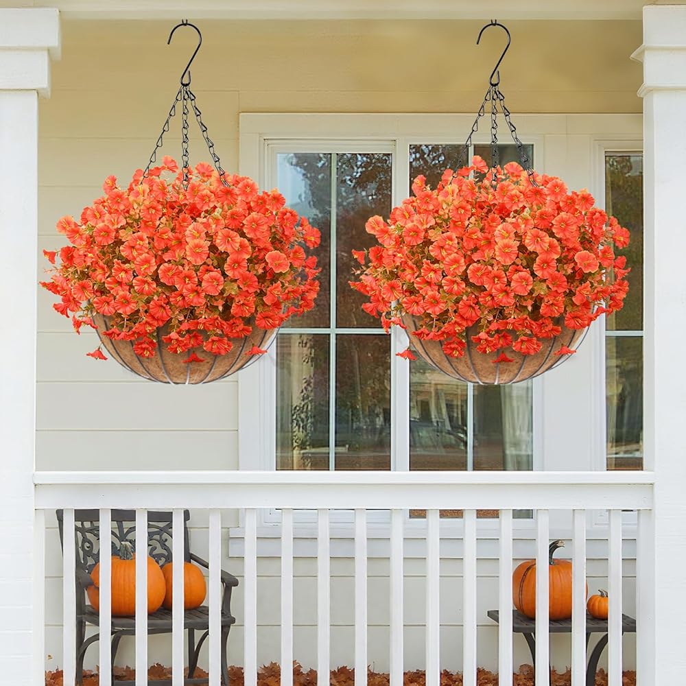 • 【UV مقاوم ومقاوم يتلاشى】 قل وداعا للتلاشي! تم تصميمها بشكل معقد وتصميمها من مواد عالية الجودة ، وهي الزهور المعلقة الاصطناعية في الهواء الطلق ليست متينة فحسب ، بل تتميز أيضًا بمقاومة أشعة فوق البنفسجية الممتازة ، مما يضمن أن ألوانها النابضة بالحياة لا تتلاشى بسهولة حتى مع التعرض المطول لأشعة الشمس. الحفاظ على منزلك نابض بالحياة مع ديكور ملون على مدار السنة.