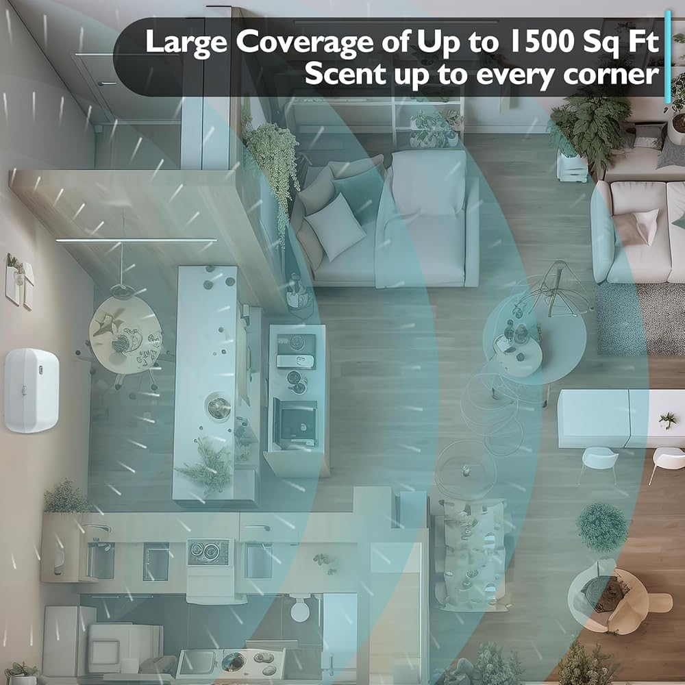 • تغطية واسعة: مزودة بمضخة طاقة تمت ترقيتها ومروحة مدمجة ، تنتشر آلة الهواء الرائحة الذكية رائحة بالتساوي في جميع أنحاء البيئة في دقائق. إنه مثالي للفندق والمكتب والمنتجع الصحي والصالون و KTV ومركز التسوق وغيرها من المساحة الكبيرة. الحد الأقصى لتغطية 1500 قدم مربع