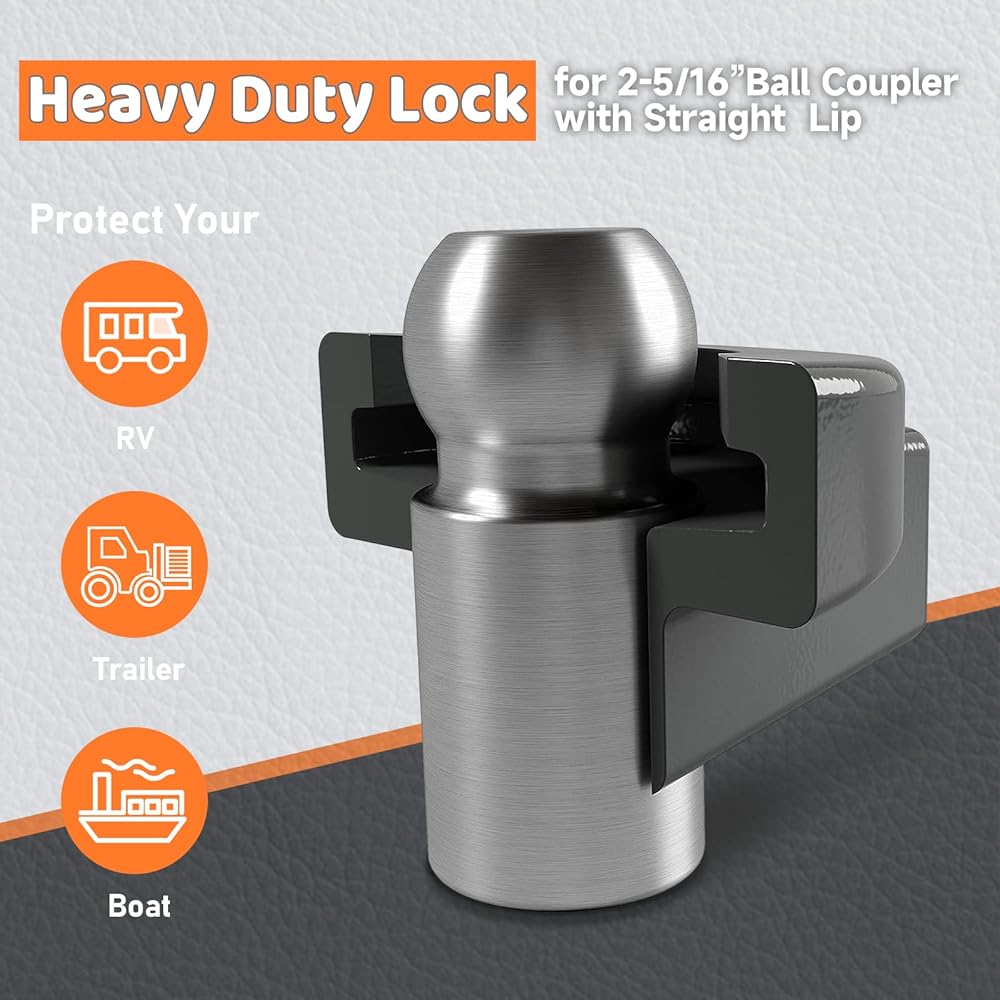 قفل مقرن U-BRP2516 Huffice U-BRP2516 ، فقط قم بتناسب 2-5/16 بوصة مقرنة الكرة مع شفة مستقيمة ، قفل عوائق RV مع مفاتيح ، قفل لسان متين متين ، ضمان 20 سنة ، 12 جنيه